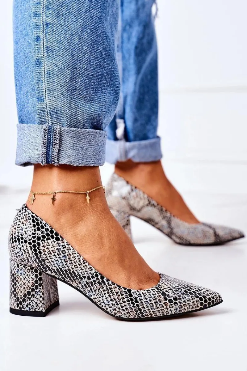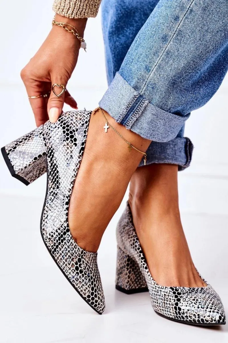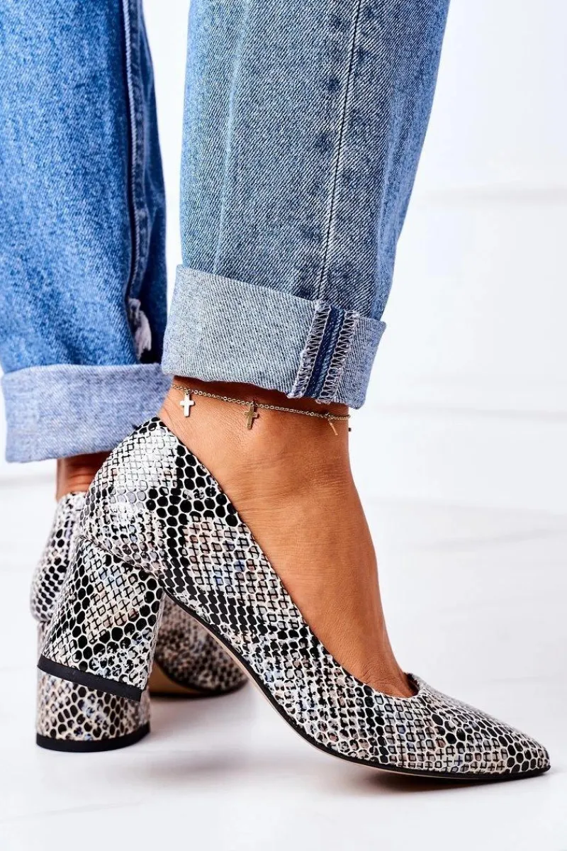 Czółenka Na Słupku>Boto Skórzane Czółenka Ze Zwierzęcym Wzorem Lewski Shoes 2801 Czarno-Niebieskie
