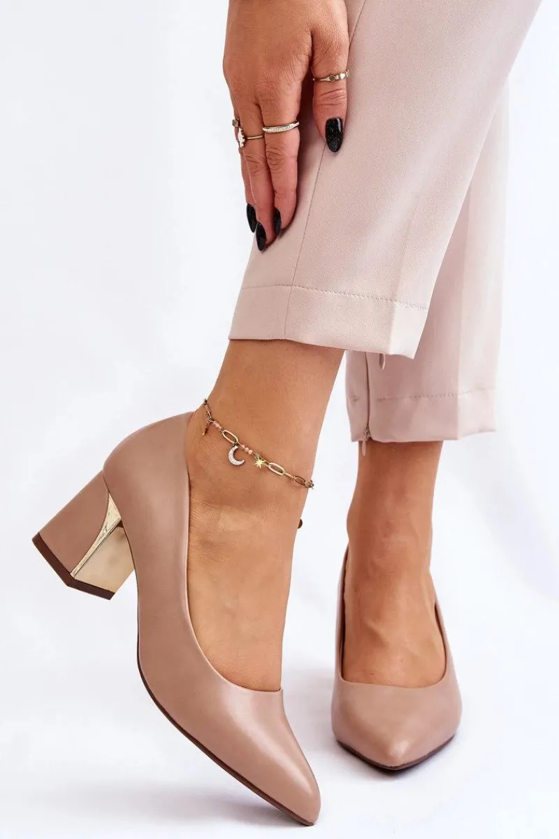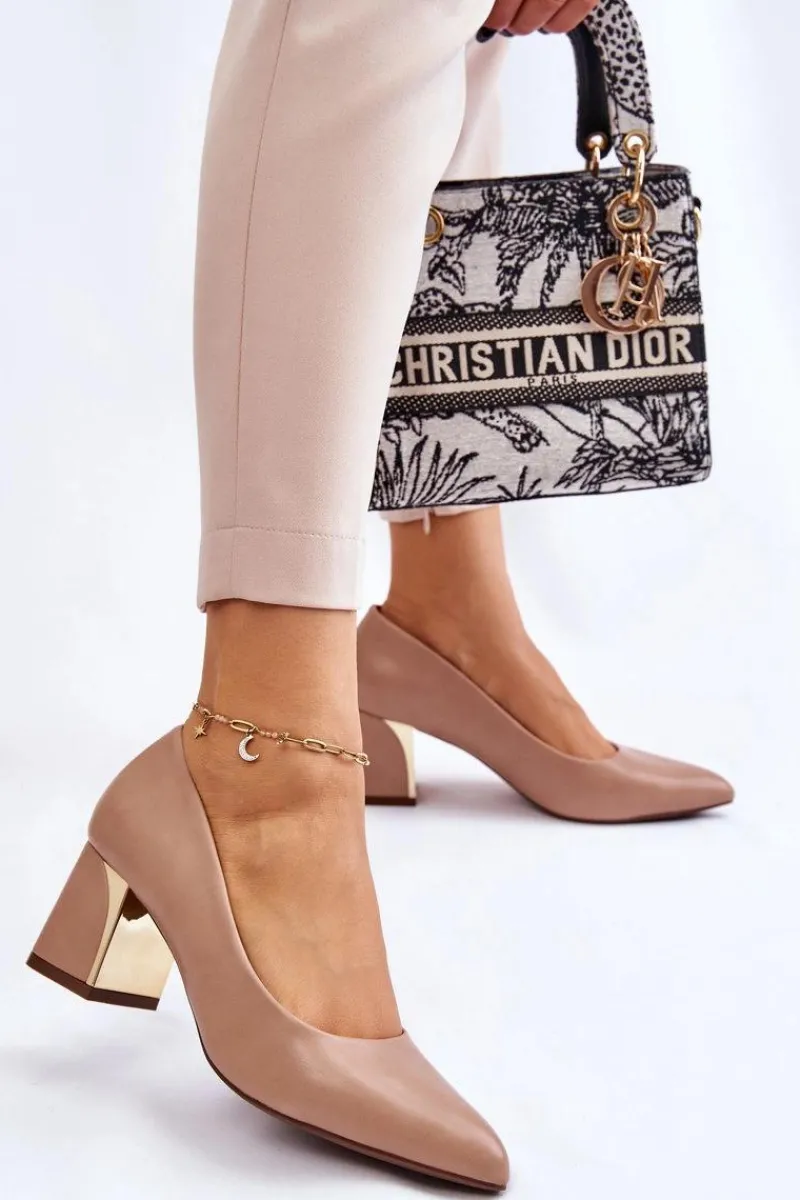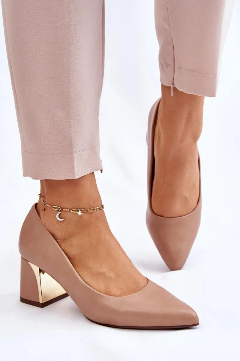 Te piękne czółenka zostały osadzone na obcasie w postaci stabilnego słupka ozdobionego lustrzanym elementem. Miękka wkładka zapewni komfortowe użytkowanie. Cholewka została wykonana ze skóry ekologicznej. Charakterystyczny nosek w szpic. Idealny model do pracy, na randkę czy biznesowe spotkania. Koniecznie musisz je mieć! Przy wyborze rozmiaru prosimy sugerować się tabelą rozmiarów.