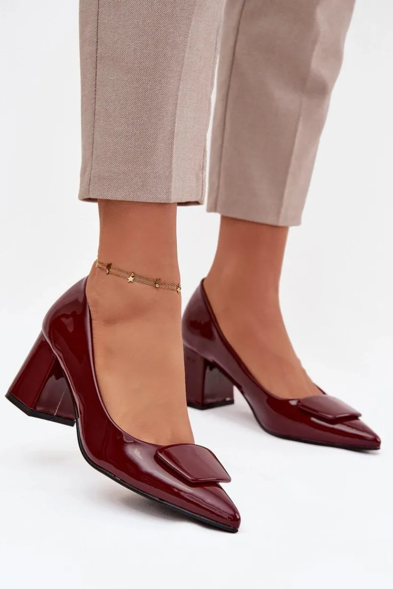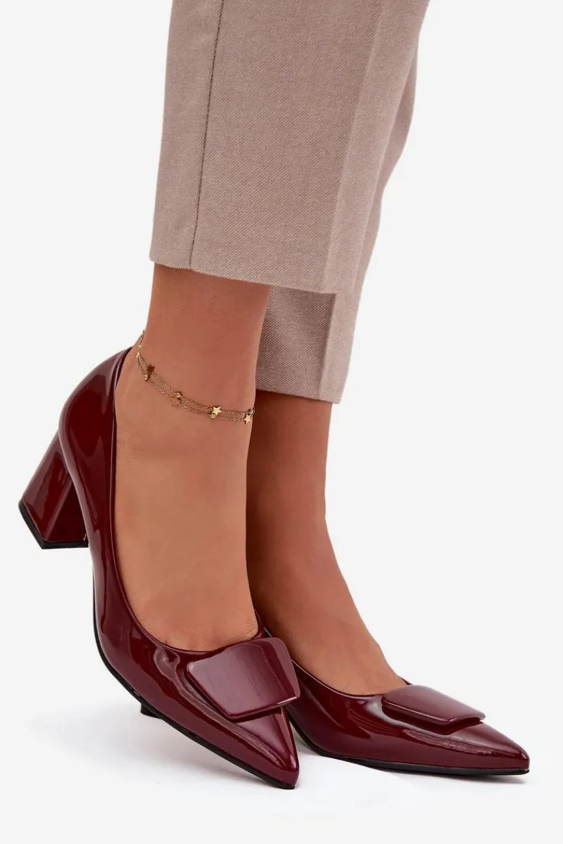 Czółenka damskie wykonane z eko skóry to klasyczna propozycja, która łączy ponadczasową elegancję z komfortem noszenia. Model osadzony na stabilnym obcasie typu słupek zapewnia wygodę przez cały dzień, a szpiczaste noski optycznie wydłużają nogi, podkreślając kobiecy charakter. Z przodu znajduje się ozdobny detal. To idealne czółenka do eleganckich stylizacji – świetnie sprawdzą się zarówno w pracy, jak i podczas wyjątkowych okazji, doskonale komponując się z sukienkami, spódnicami i klasycznymi spodniami. Przy wyborze rozmiaru prosimy kierować się tabelą rozmiarów.