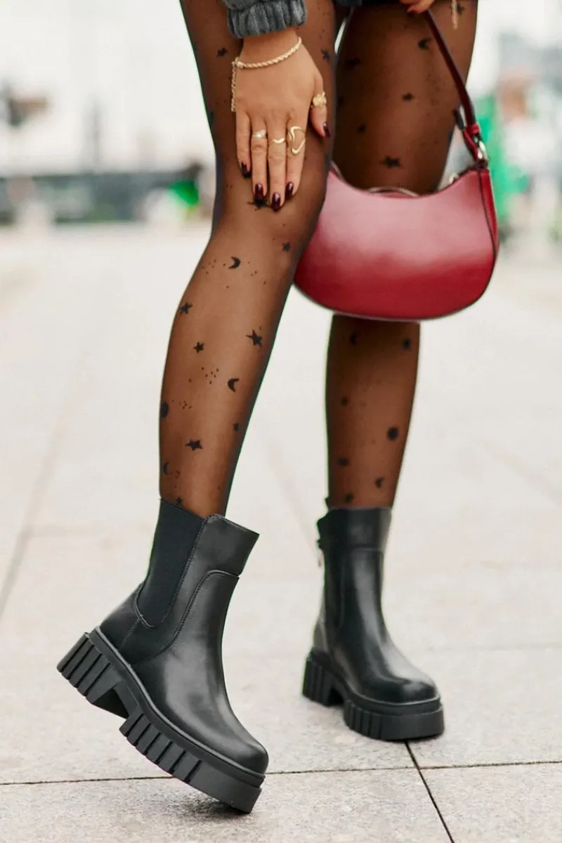 Botki wykonane z eko skóry to modny i praktyczny wybór na chłodniejsze dni. Model zapinany na zamek, osadzony na platformie i płaskim obcasie, zapewnia wygodę oraz subtelne podwyższenie. Zaokrąglone noski nadają im klasyczny wygląd, a elastyczna wstawka na cholewce ułatwia dopasowanie do nogi. Wnętrze ocieplane kocem obuwniczym gwarantuje ciepło i komfort, co czyni te botki doskonałym wyborem na co dzień. Przy wyborze rozmiaru prosimy sugerować się tabelą rozmiarów.