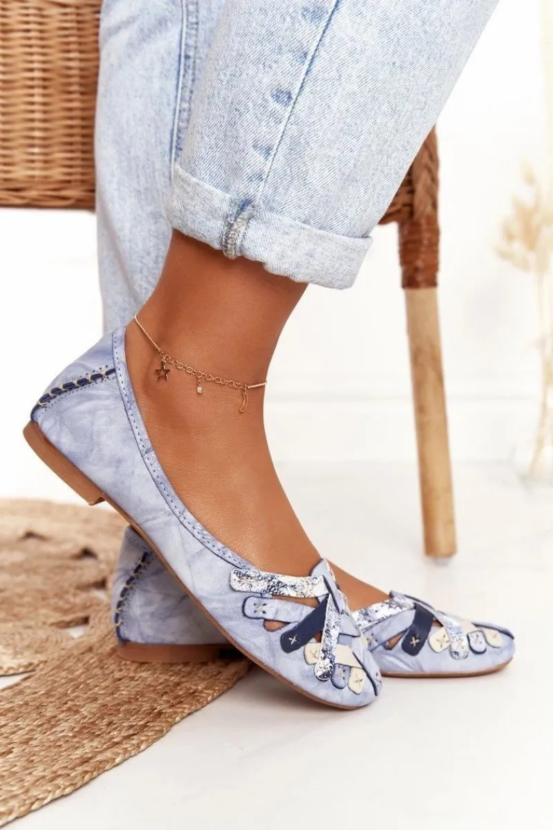 Damskie Skórzane Baleriny Niebieskie 01358-45 Damskie Baleriny Skórzane|Baleriny Klasyczne
