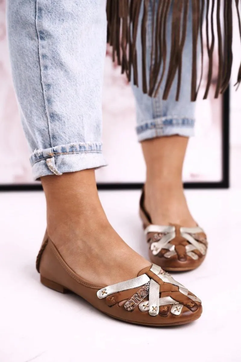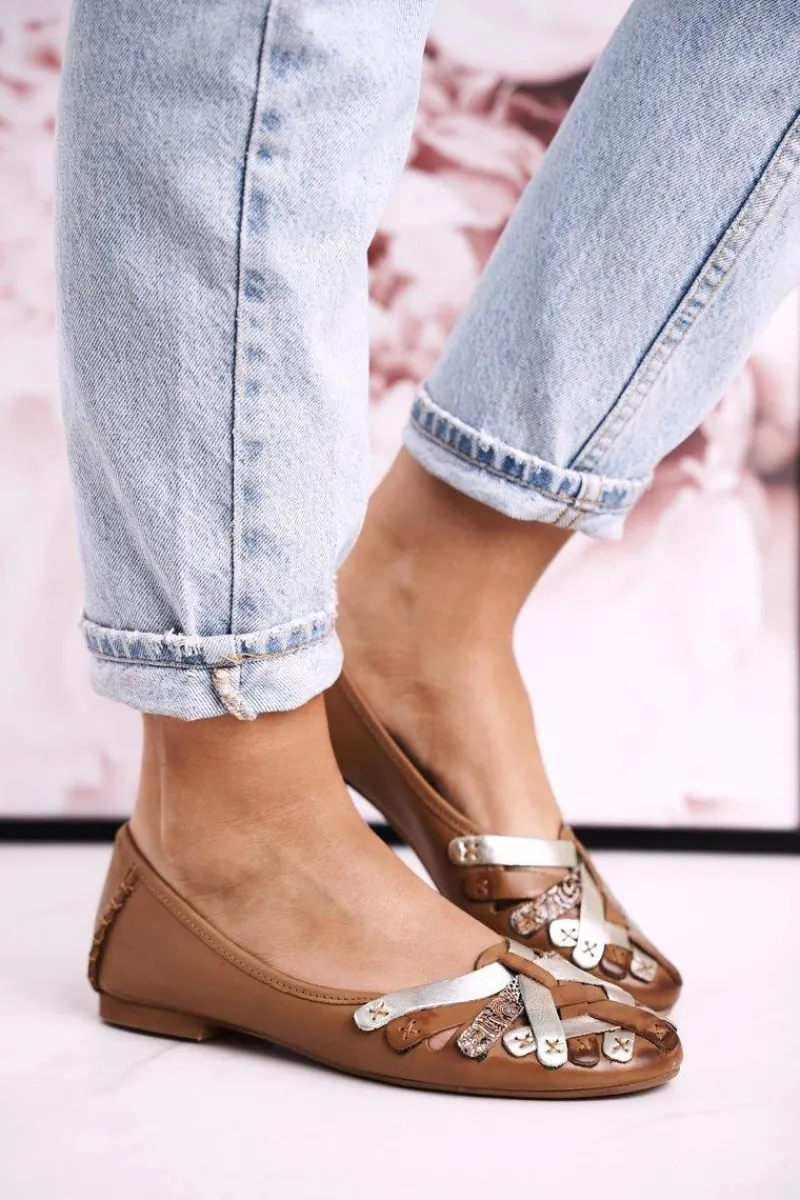 Damskie Skórzane Baleriny Rude 01358-46 Damskie Baleriny Skórzane|Baleriny Klasyczne