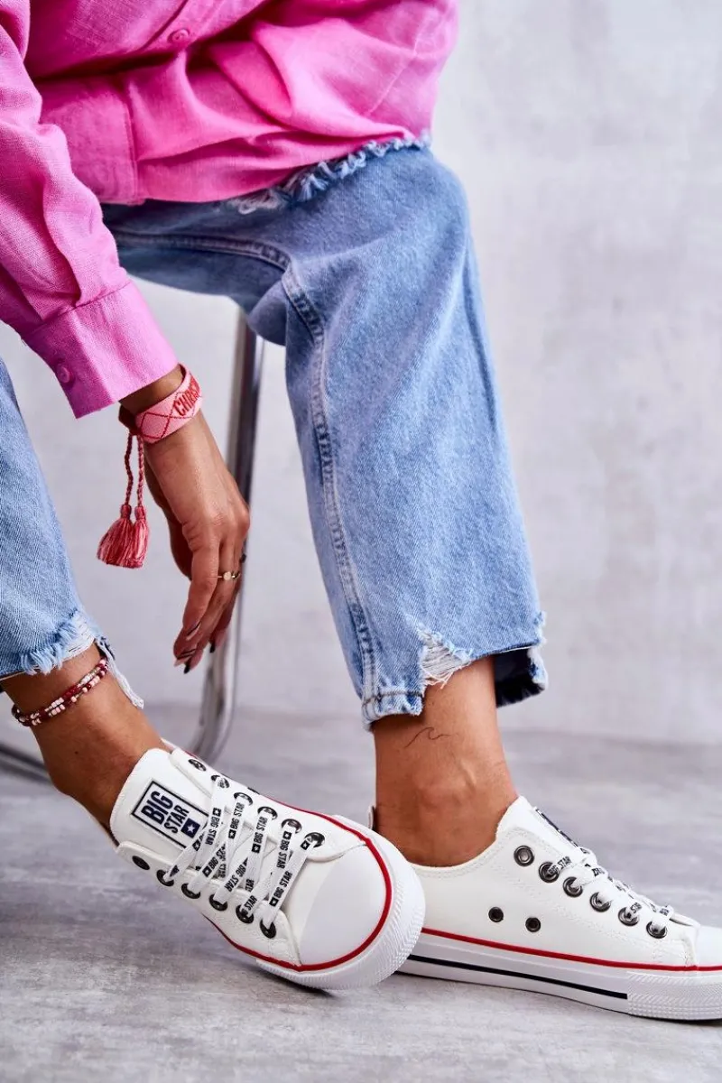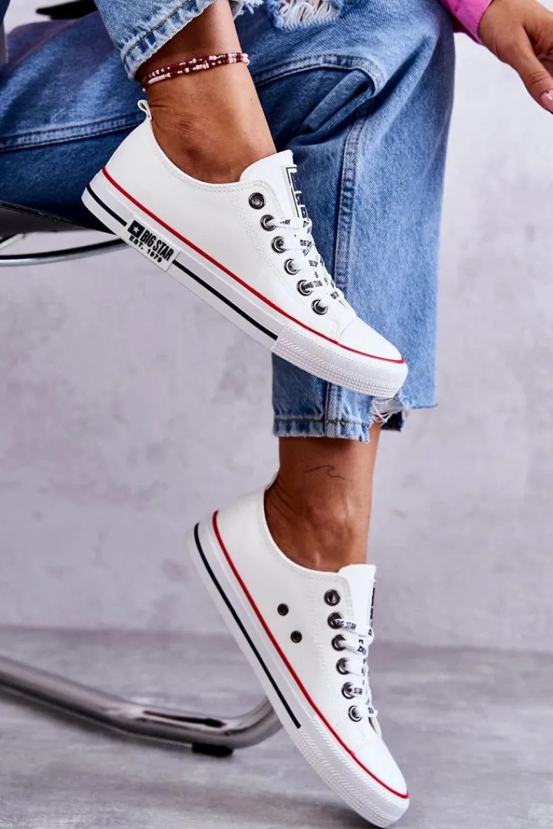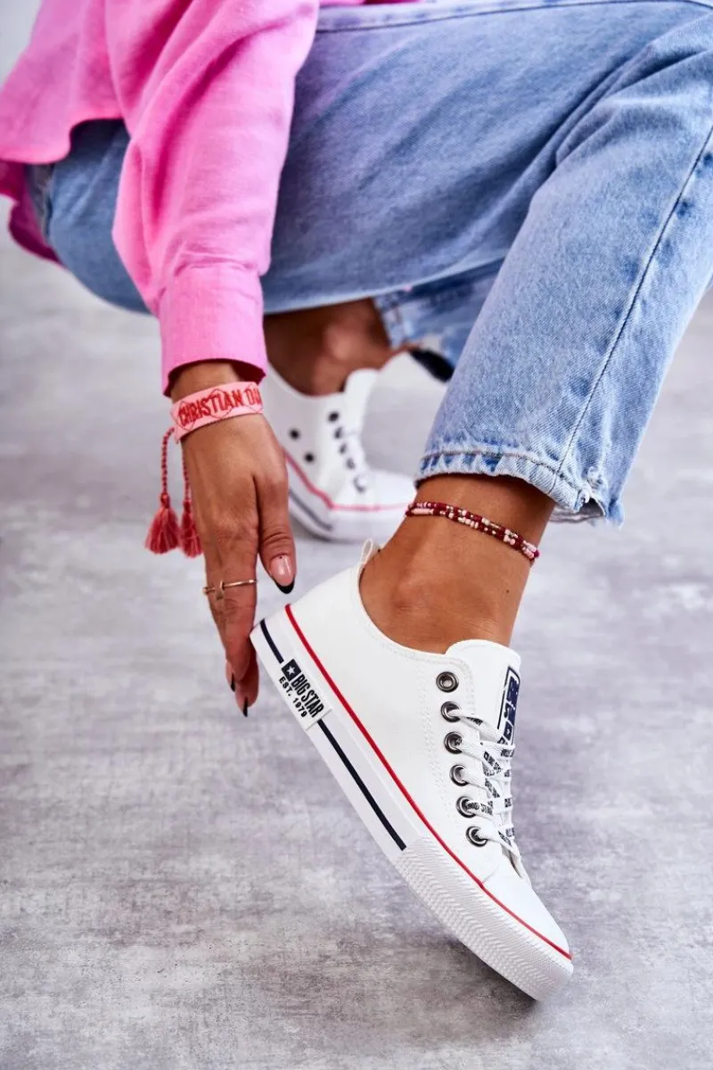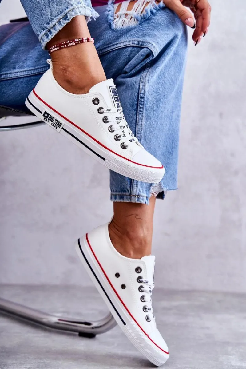 Ponadczasowe trampki damskie marki Big Star zostały wykonane z eko skóry. Posiadają gumowy, wzmacniany nosek. Model charakteryzuje się logowanymi sznurowadłami. Podeszwa wraz z platformą wykonane z gumowego tworzywa, dzięki którym model ten jest antypoślizgowy. Wkładka materiałowa. Klasyczne trampki z pewnością świetnie będą prezentować się w wielu stylizacjach. Przy wyborze rozmiaru prosimy sugerować się tabelą rozmiarów.