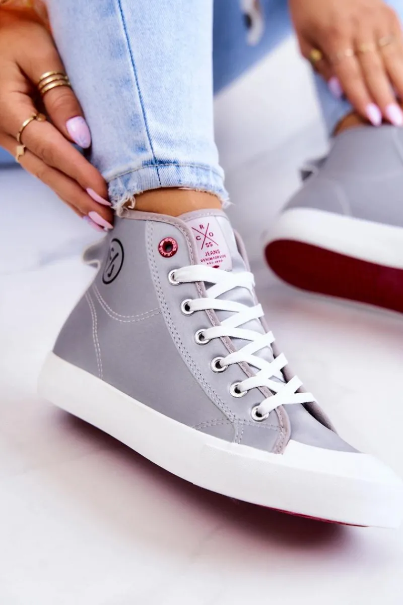 Damskie Wysokie Trampki JJ2R4057C Szare Damskie Trampki Damskie Cross Jeans|Trampki Damskie Wysokie