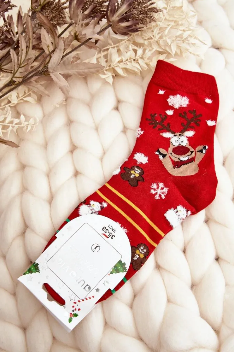 Świąteczne, damskie skarpetki za kostkę zostały wykonane głównie z bawełny. Świetnie sprawdzą się także jako dodatek do prezentu dla bliskiej osoby! Wygodne i komfortowe podczas użytkowania.
