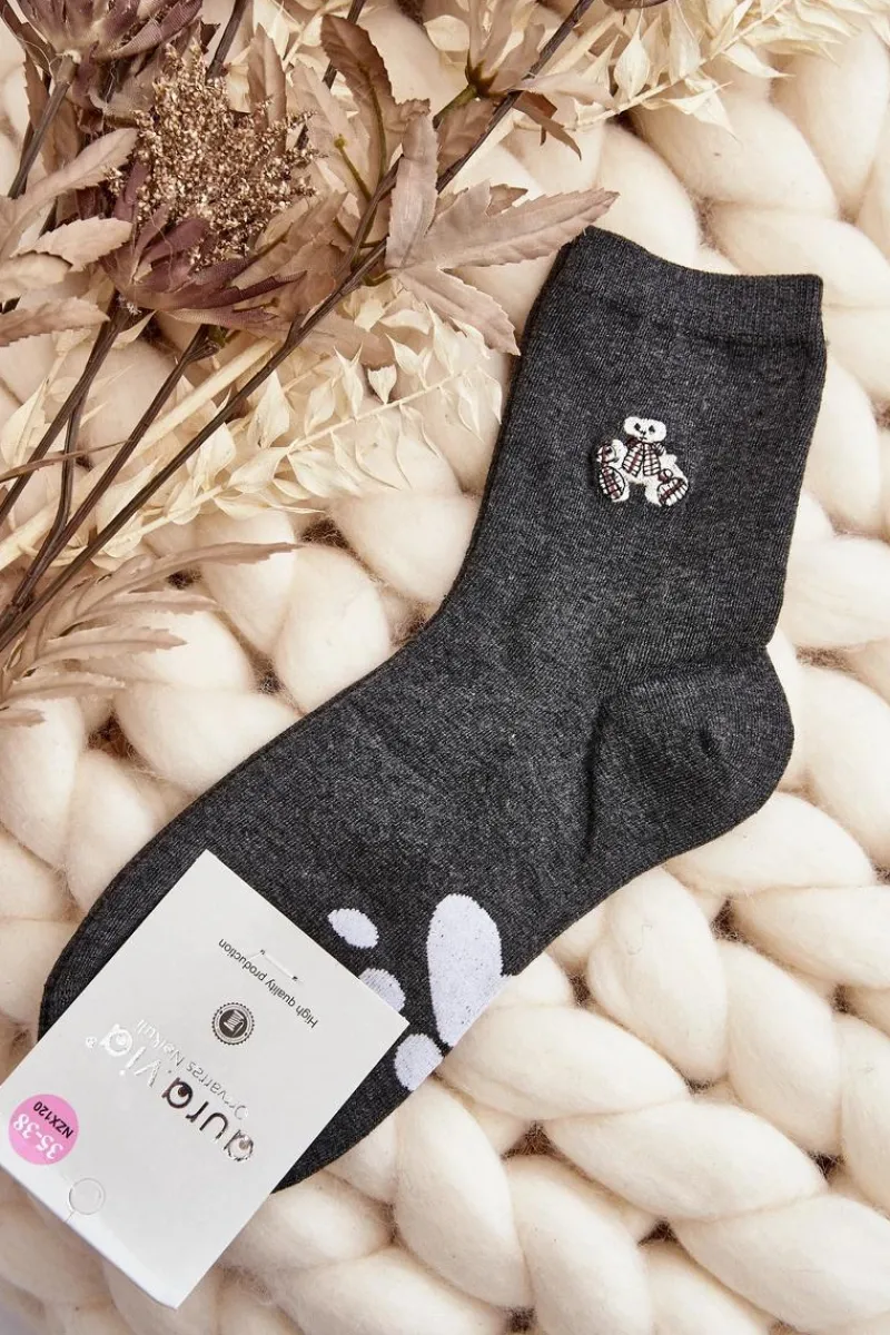 Damskie skarpety za kostkę idealnie sprawdzą się podczas chłodniejszych dni. Wykonane głównie z bawełny. Ozdobione sercami oraz misiem. Świetnie sprawdzą się jako dodatek do świątecznego prezentu. Koniecznie powinnaś je mieć!