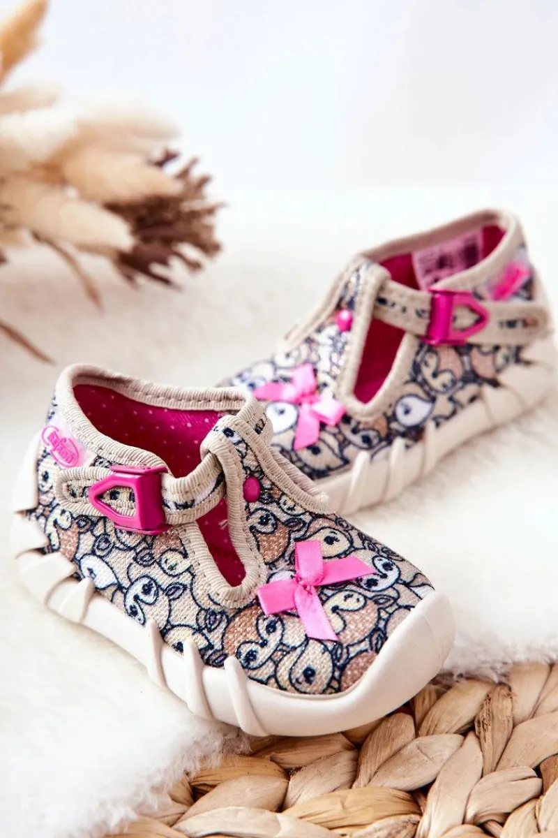 Ten model zachwyci niejedną młodą osóbkę! Śliczne buciki z zapinką przy kostce doskonale podtrzymują nóżkę dziecka, zapewniając mu stabilny i pewny krok. Posiadają szersze czubki, które dają dużo przestrzeni ruchliwym paluszkom oraz oddychającą podeszwę. Buty są polecane przez ortopedów. Na czubku obuwia znajduje się urocza kokardka. Sprawdź także inne nasze oferty z papciami dla dorosłych i dzieci! ! Przy wyborze rozmiaru prosimy kierować tabelą rozmiarów.
