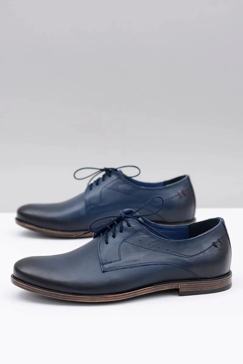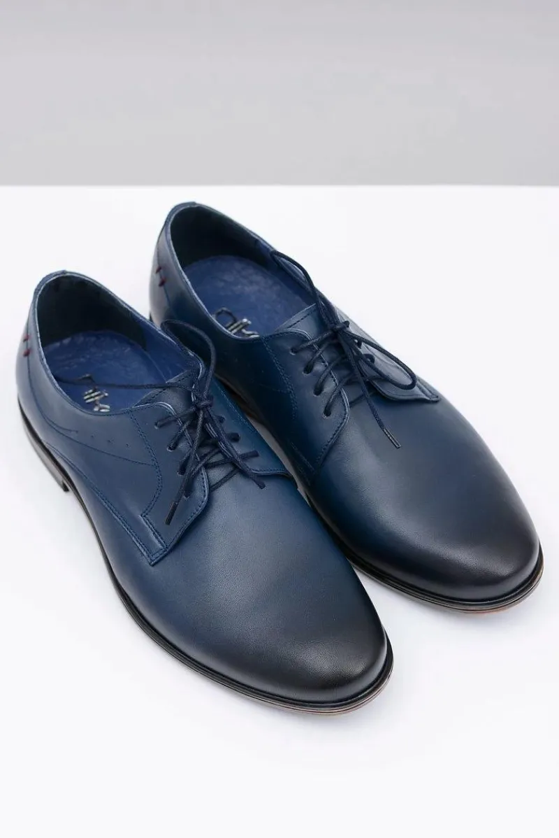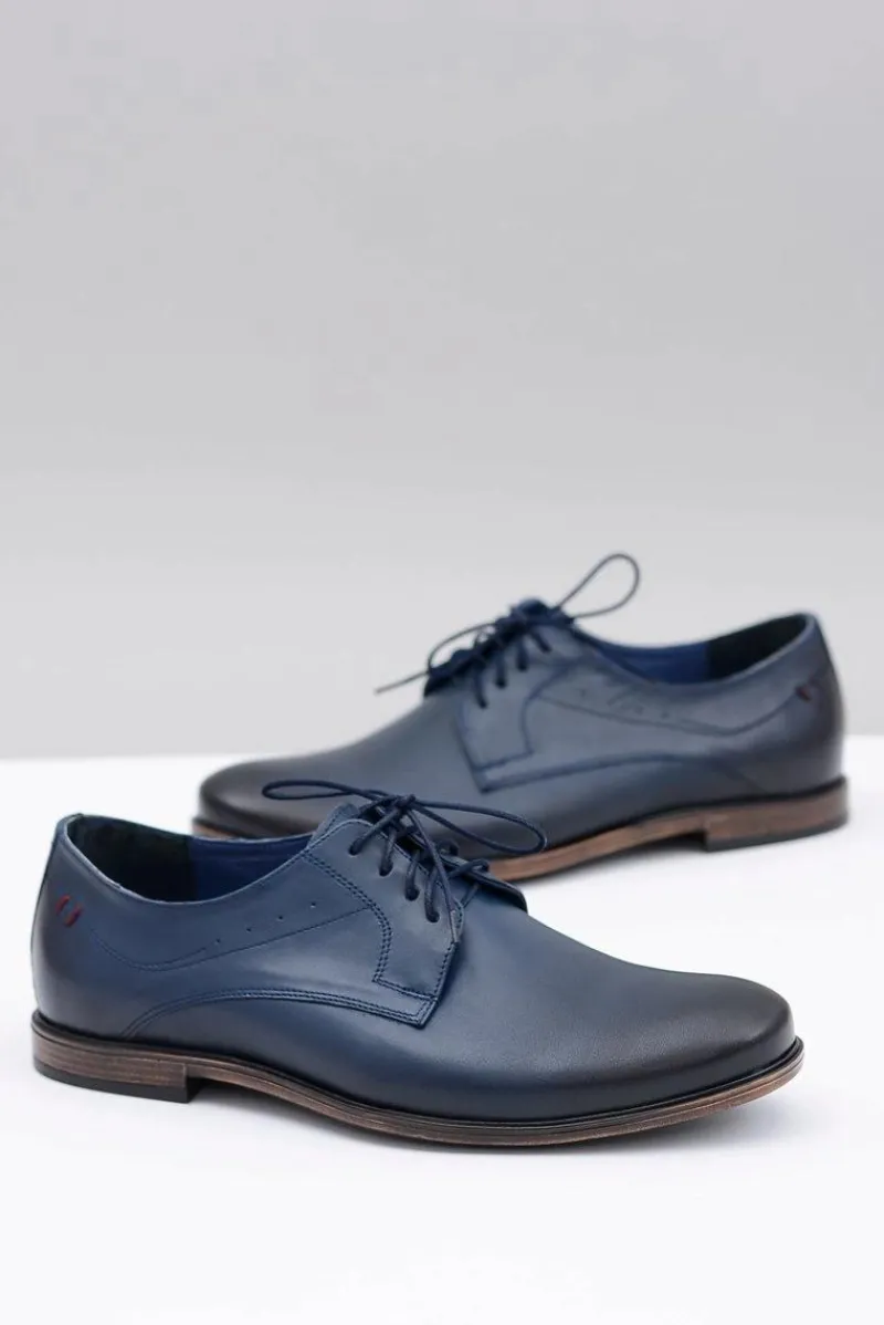 Discount Boto Nikopol Granatowe Skórzane Męskie Półbuty James