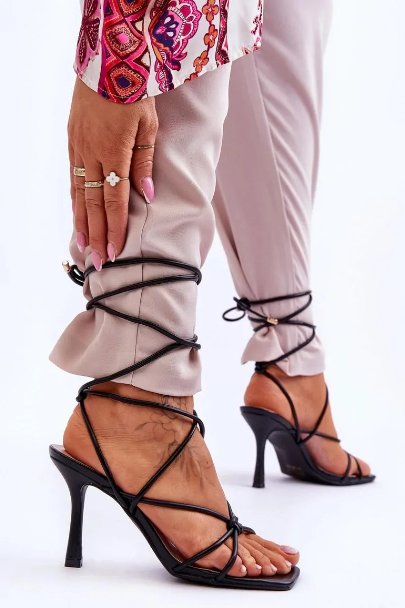 Damskie sandałki zostały wykonane z eko skóry. Posiadają paseczki z pętelkami i jest wiązany na wysokości łydki. Dodatkowo zapiętek w tych butach jest usztywniany. Tym modelem urozmaicisz wiele swoich stylizacji! Sandałki zostały osadzone na szpilce. Sprawdź także inne modele sandałek! Przy wyborze rozmiaru prosimy sugerować się tabelą rozmiarów.