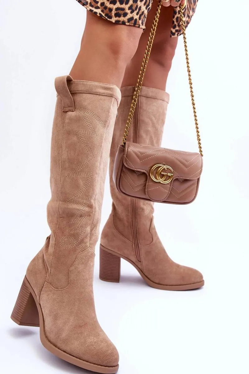Kozaki damskie zostały wykonane z eko zamszu. Osadzone na obcasie w postaci słupka. Zapinane na suwak z boku. Dodatkowo zapiętek w tym obuwiu został usztywniony. Miękka wkładka zapewni komfortowe użytkowanie. Model ten świetnie sprawdzi się w wielu stylizacjach! Przy wyborze rozmiaru prosimy sugerować się tabelą rozmiarów.