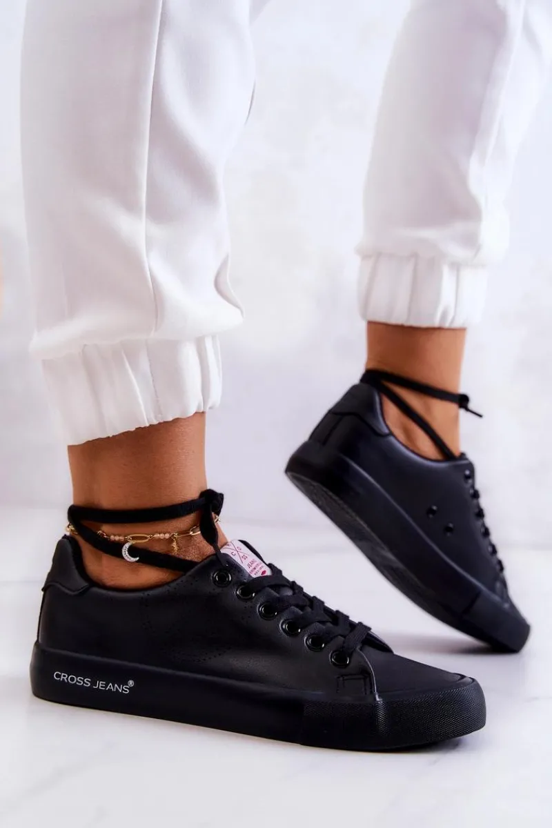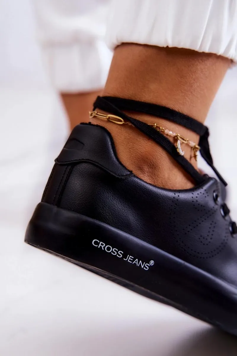 Ponadczasowe sznurowane tenisówki wykonane z eko-skóry. Podeszwa antypoślizgowa, zdobiona logiem CROSS JEANS. Na boku są delikatnie perforowane. Miękka, wygodna wkładka zapewnia komfort przez cały dzień. Tenisówki doskonale sprawdzą się zarówno podczas wyjścia do pracy, jak i w trakcie wycieczki za miasto. Przy wyborze rozmiaru prosimy kierować się tabelą rozmiarów.