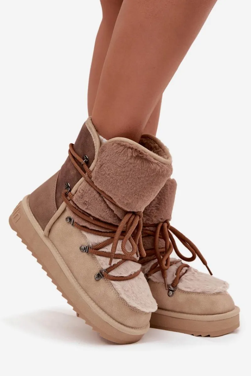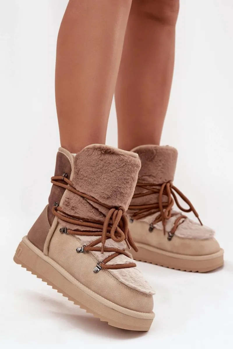 Damskie śniegowce wykonane z wysokiej jakości materiału syntetycznego to niezawodna propozycja na zimowe dni. Osadzone na podeszwie z gumowego tworzywa, co zapewnia pewny krok na różnych nawierzchniach. Wnętrze i cholewka wyściełane miękkim futerkiem gwarantują ciepło i wygodę noszenia. Stylowe i funkcjonalne, doskonale sprawdzą się podczas mroźnych dni, zapewniając komfort i ochronę przed chłodem. Przy wyborze rozmiaru prosimy sugerować się tabelą rozmiarów.
