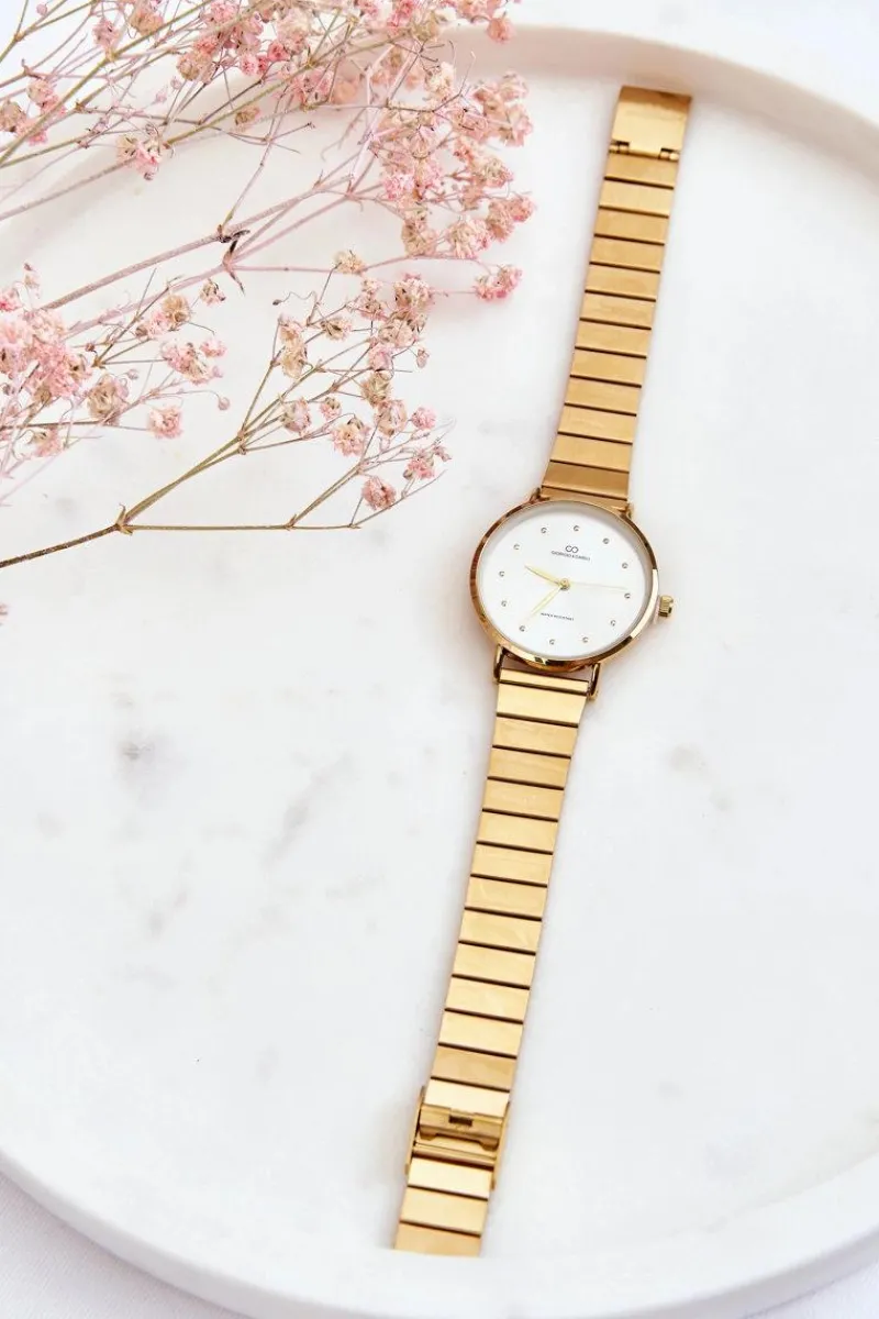Ten zegarek damski to idealne dopełnienie wielu stylizacji! Zapinany na zatrzask. Gładka tarcza została dodatkowo ozdobiona dżetami. Model wodoodporny. Koniecznie powinnaś go mieć!