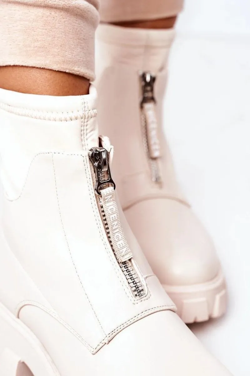 Piękne botki damskie z elastyczną, materiałową cholewką. Buty są wykonane z eko skóry. Zakładanie ułatwi wszyty suwak. Przy wyborze rozmiaru prosimy sugerować się tabelą rozmiarów.