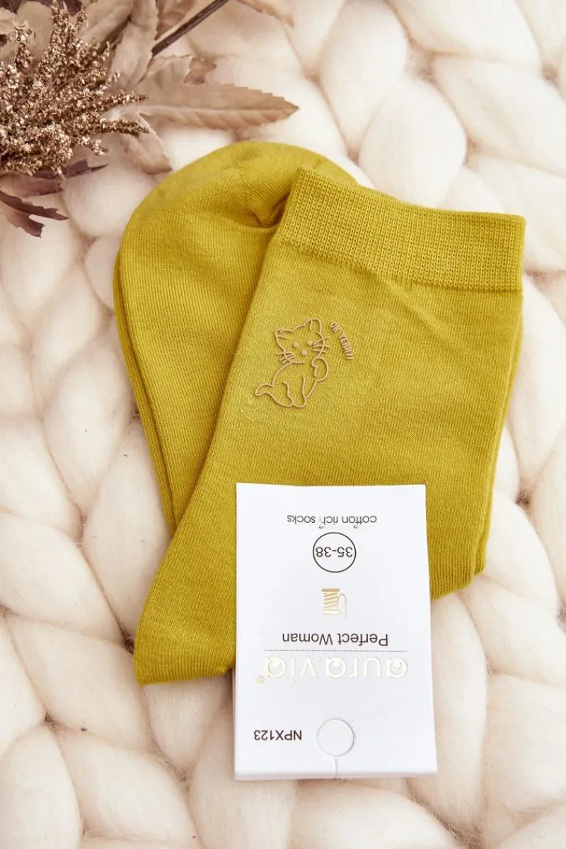 Discount Damskie Gładkie Skarpety Z Kotkiem Żółte Skarpetki|Skarpetki