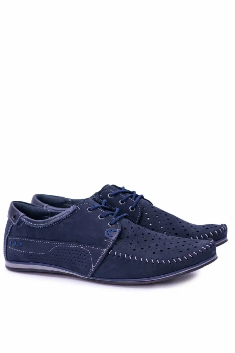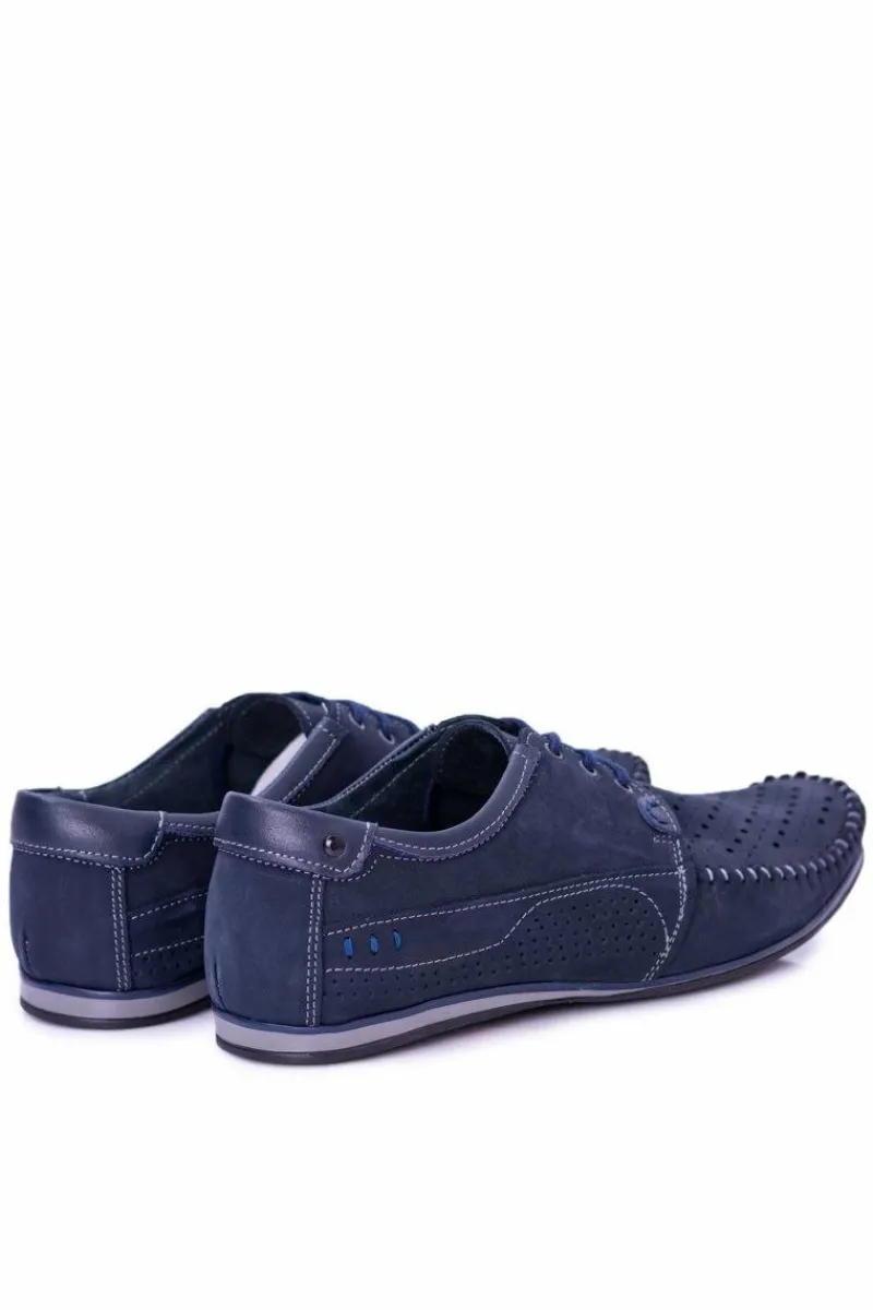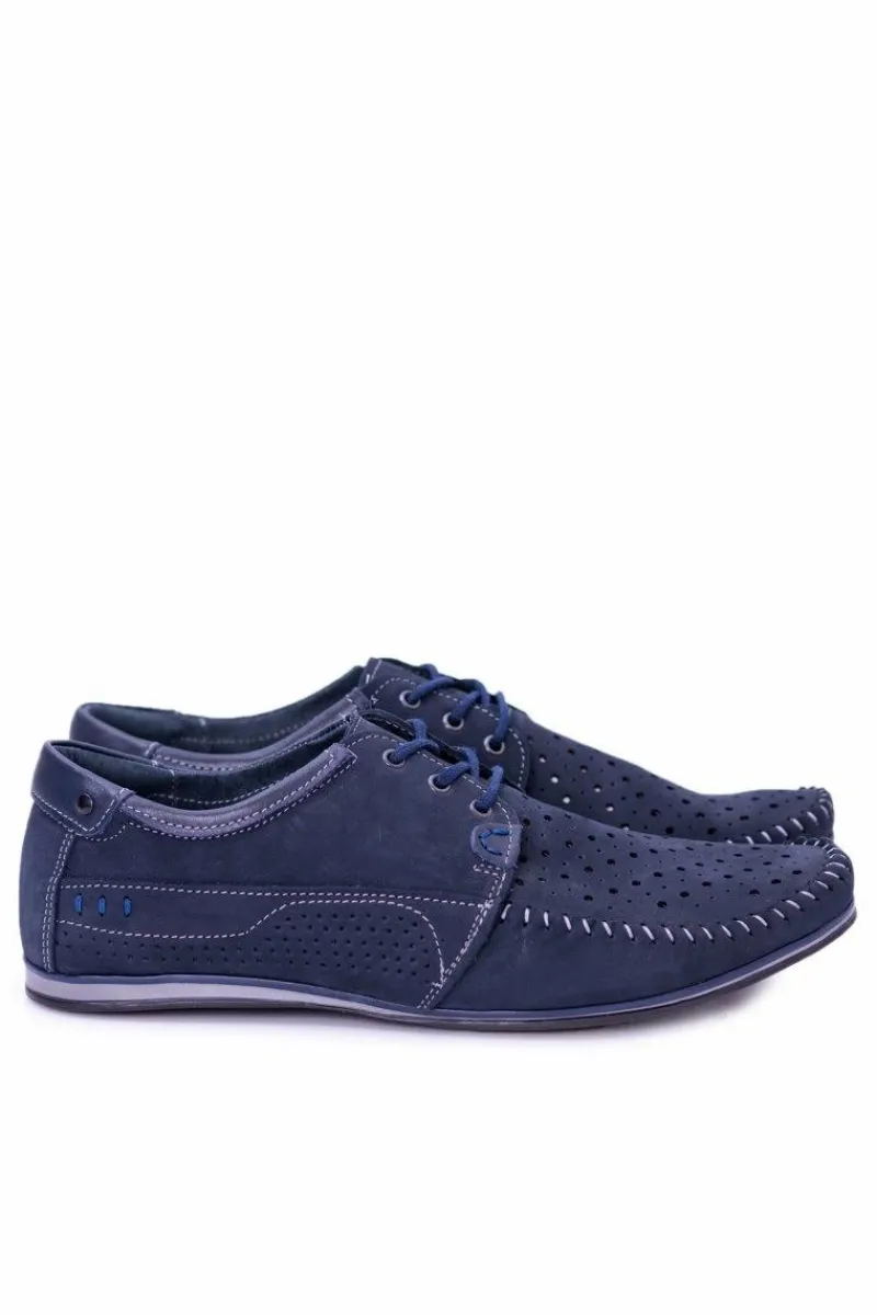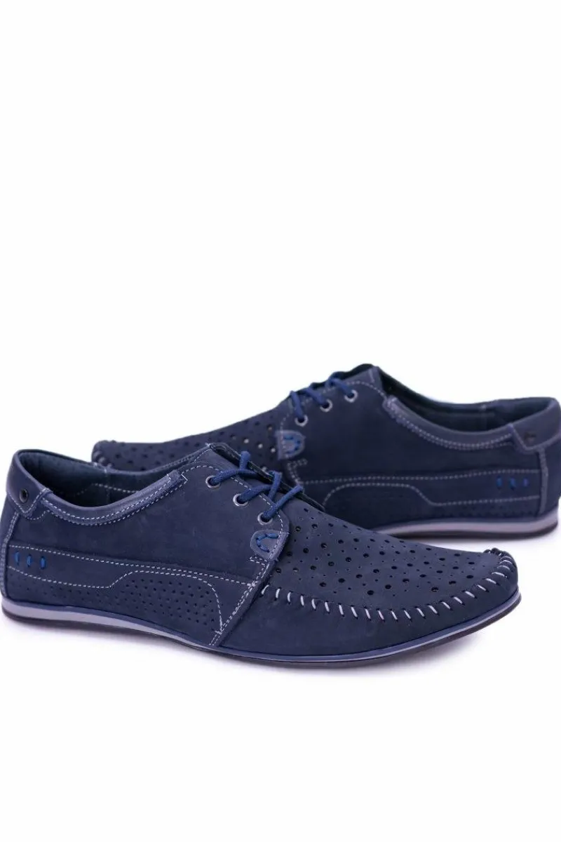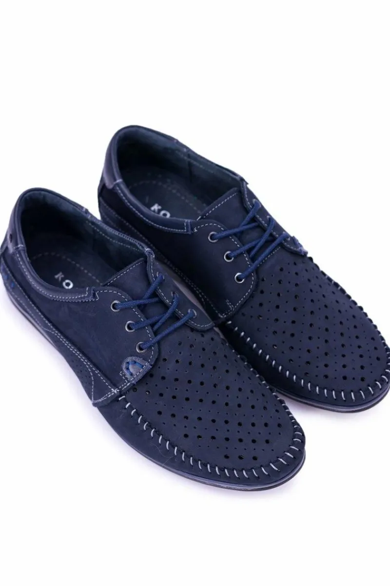 Discount Dziurkowane Skórzane Mokasyny Granatowe Półbuty Mortego Męskie Mokasyny Sznurowane