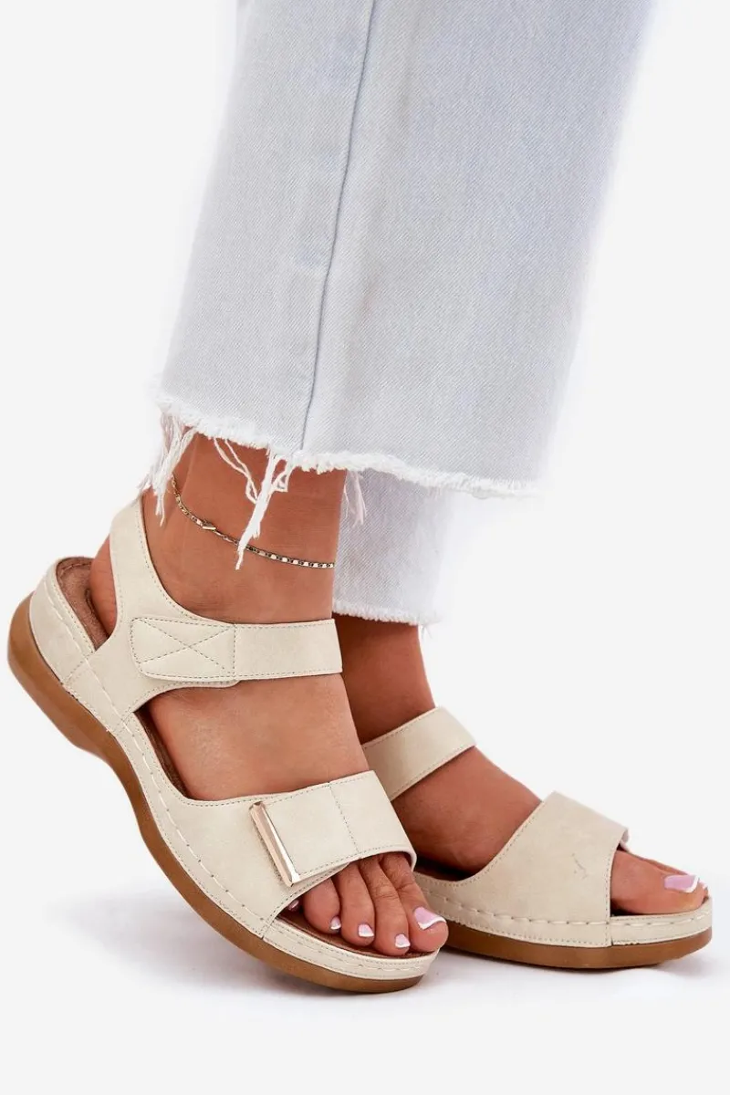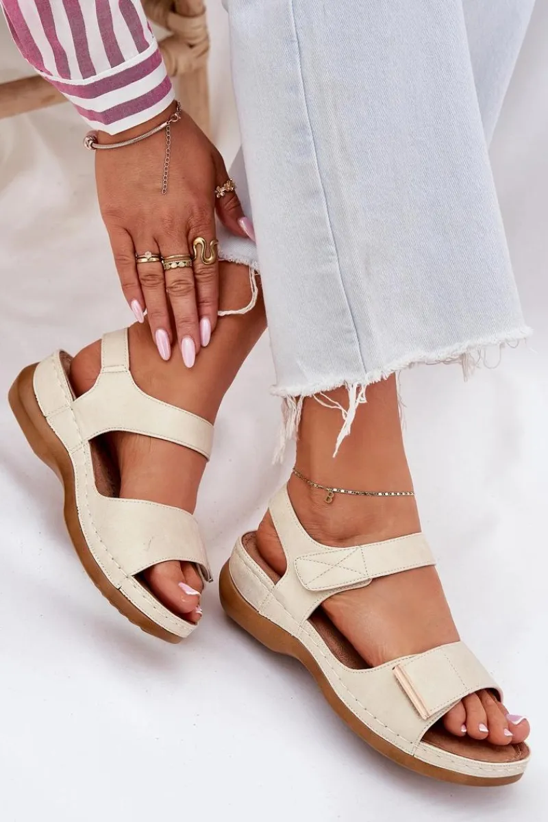 Sandały damskie na rzep wykonane z eko skóry to doskonałe połączenie stylu i wygody. Ich prosty design sprawia, że są one uniwersalnym dodatkiem do letnich stylizacji. Wykonane z wysokiej jakości materiałów, zapewniają trwałość i komfort noszenia. Idealne na ciepłe dni, zapewniają lekkość i swobodę ruchu. Miękka wkładka z efektem poduszki jest niezwykle wygodna podczas użytkowania. Przy wyborze rozmiaru prosimy sugerować się tabelą rozmiarów.