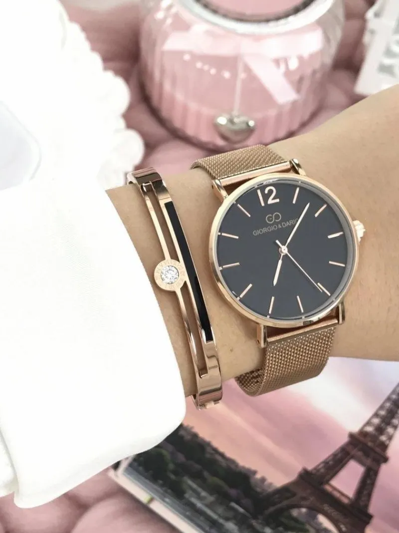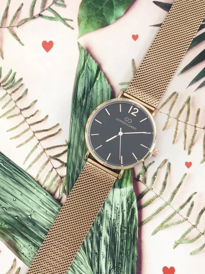 Zegarek Rene marki Giorgio & Dario to gratka stworzona z myślą o kobietach kochających gustowne dodatki nie tylko do eleganckich ale również do codziennych stylizacji. Zegarek posiada płaskie szkiełko, dzięki temu jeszcze lepiej prezentuje się na ręce a jednocześnie jest bardziej czytelny. Bransoleta typu mesh w kolorze tarczy oraz koperta utrzymana w kolorystyce złota wykonana ze stali chirurgicznej z możliwością łatwej i szybkiej regulacji. Wysoka jakość wykonania mechanizmu i koperty.