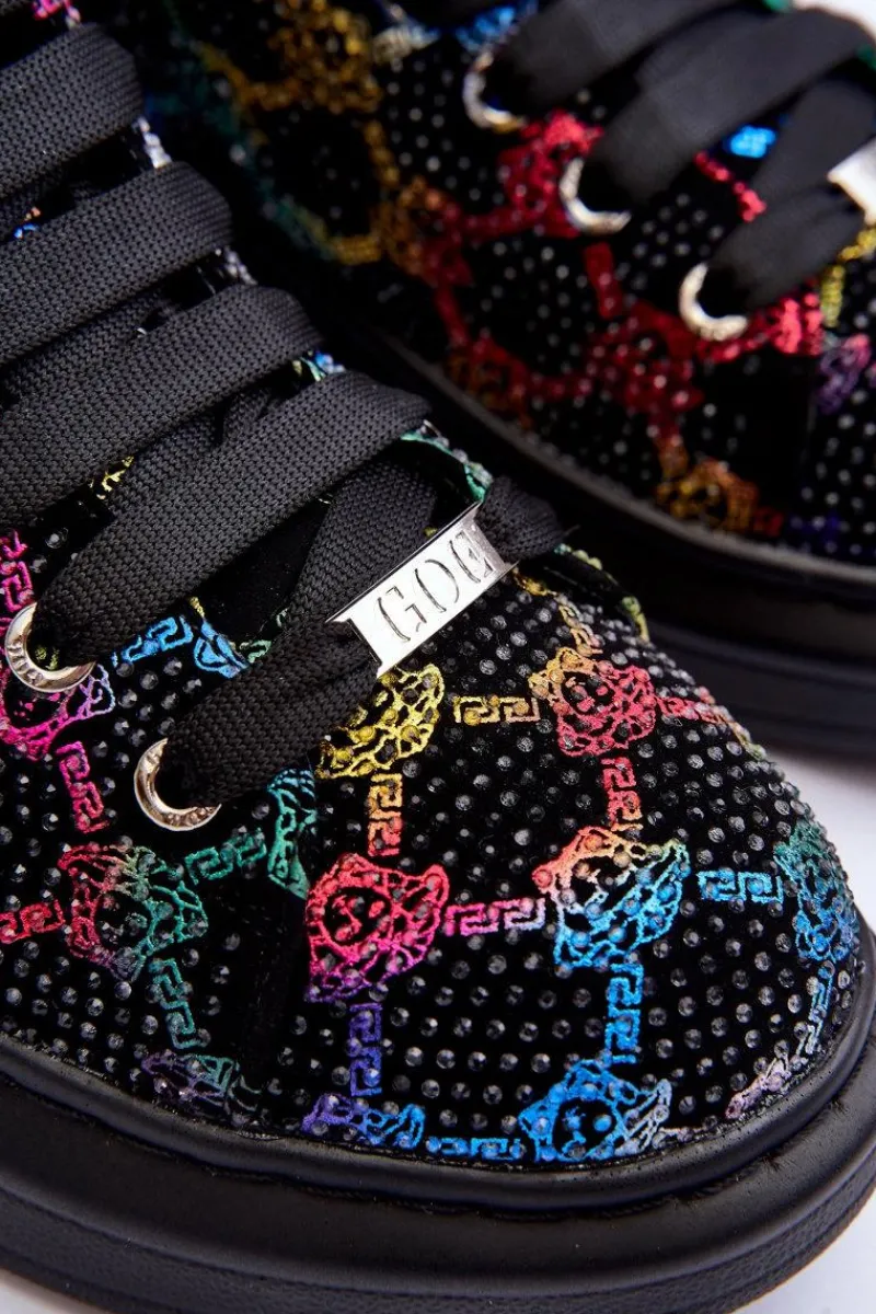 Buty sportowe w modny wzór zostały wykonane z wysokiej jakości materiału tekstylnego z dżetami. Osadzone na masywnej platformie. Miękka, eko skórzana wkładka gwarantuje wygodne użytkowanie. Buty posiadają klasyczne sznurowanie, które pozwoli na odpowiednie dopasowanie obuwia. Świetny model, który powinien znaleźć się w Twojej szafie! Przy wyborze rozmiaru prosimy sugerować się tabelą rozmiarów.