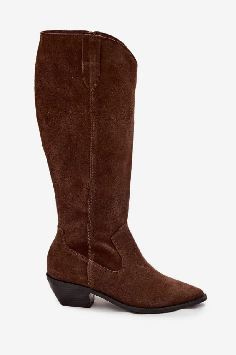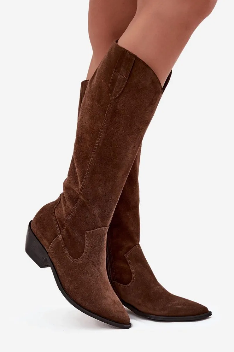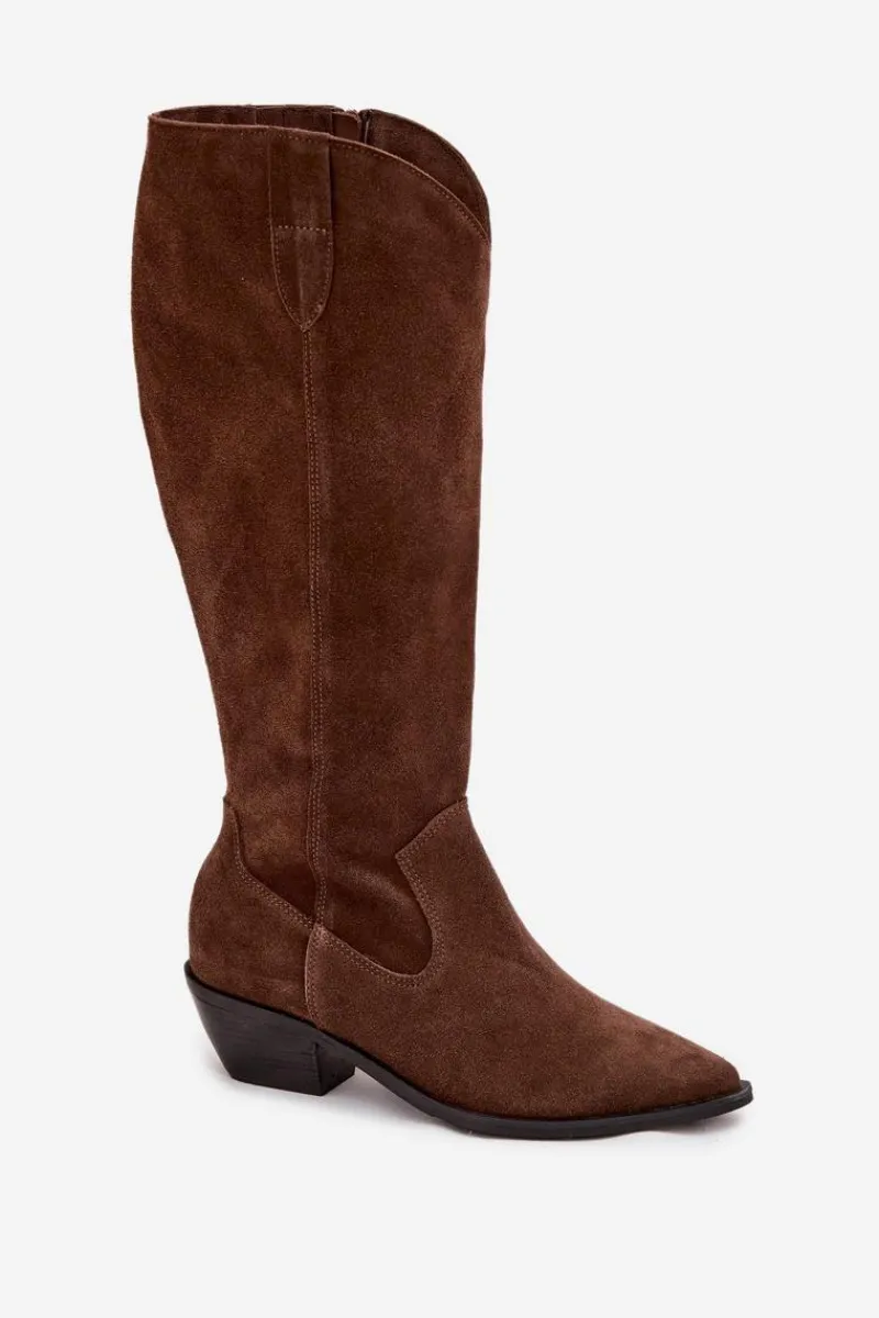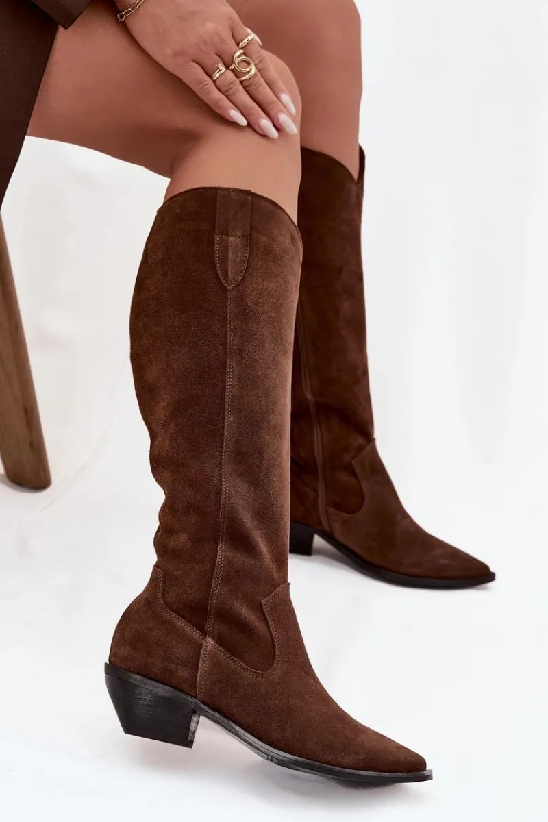 Discount Kozaki Kowbojki Z Naturalnego Zamszu Ocieplane 4225 Brązowe Damskie Kozaki Ocieplane|Kozaki Wiosenne