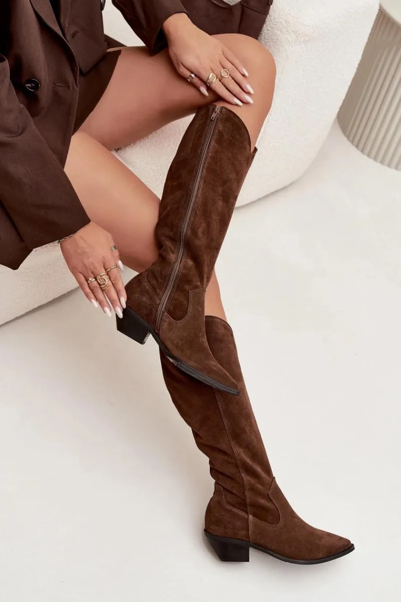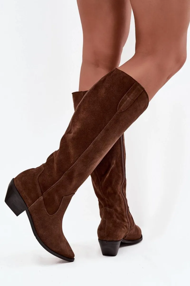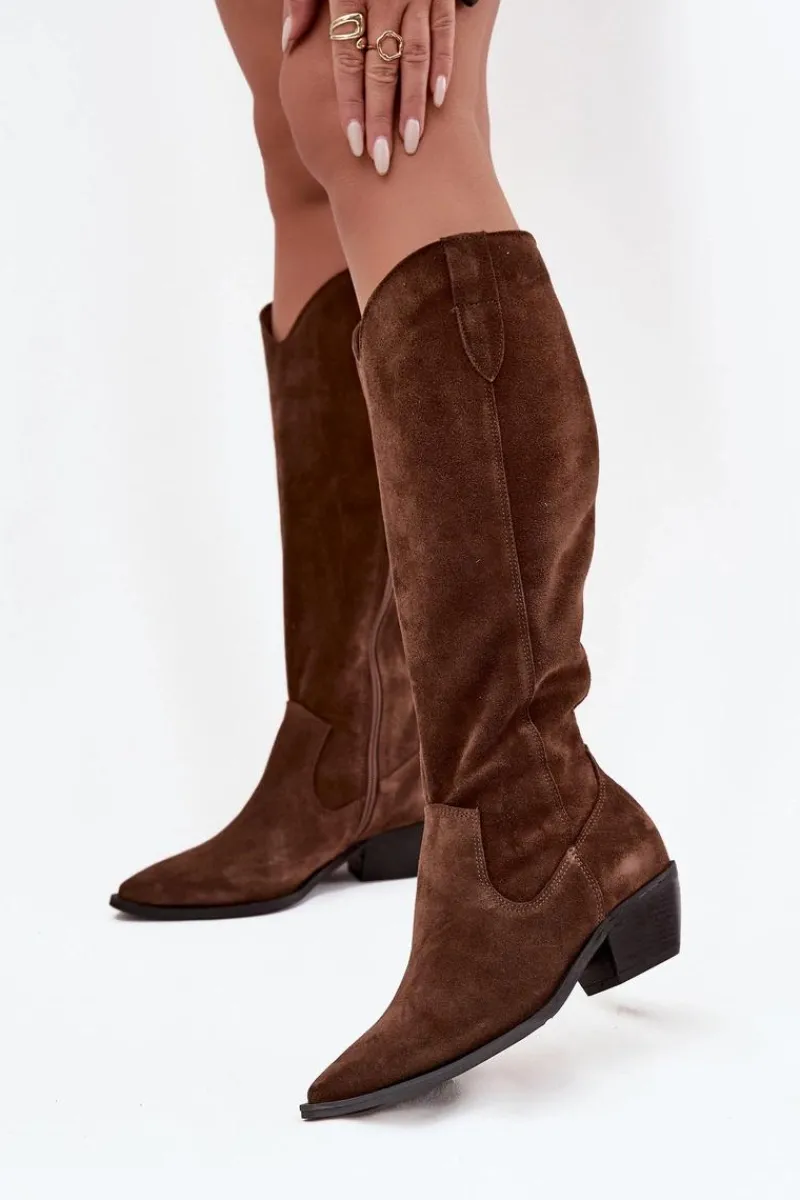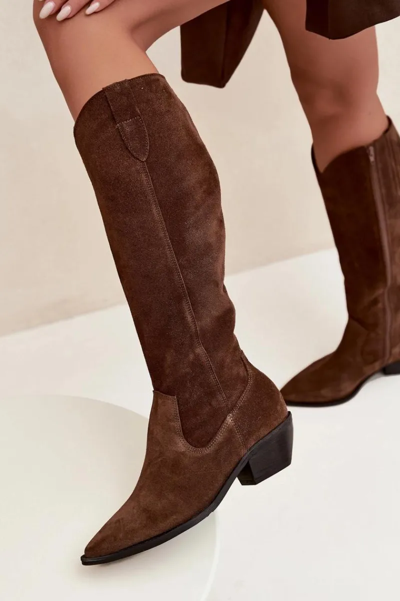 Discount Kozaki Kowbojki Z Naturalnego Zamszu Ocieplane 4225 Brązowe Damskie Kozaki Ocieplane|Kozaki Wiosenne