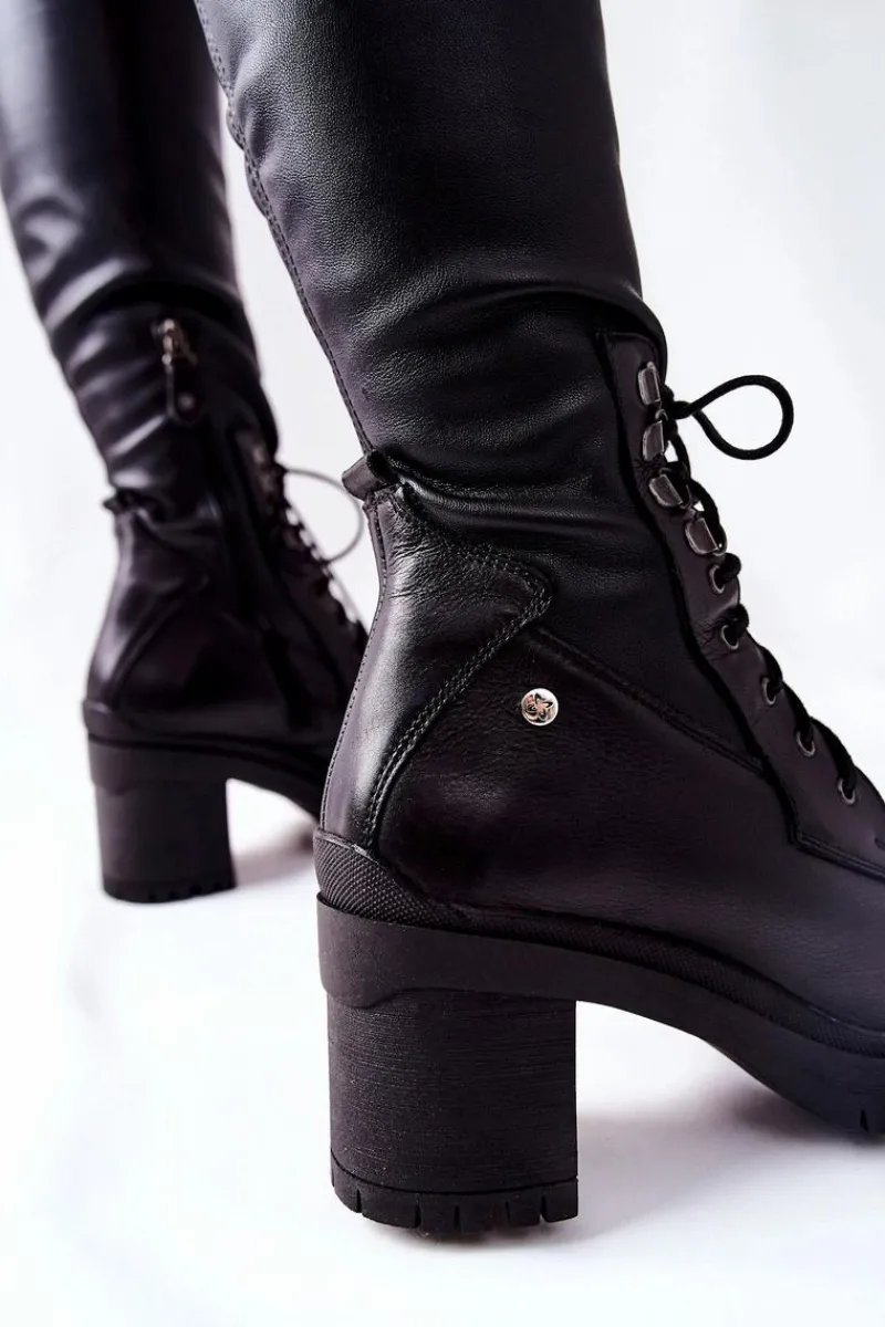 Kozaki renomowanej firmy Maciejka posiadają suwak do połowy cholewki. Wierzch wykonany ze skóry naturalnej, który idealnie podkreśli każdą stylizację. Efektowne wiązanie sprawia, że można je dopasować do własnych wymagań. Wysoka cholewka zapewni Ci dużo ciepła, a miękka wkładka sprawia, że są niezwykle komfortowe w noszeniu. Przy wyborze rozmiaru prosimy kierować tabelą rozmiarów.