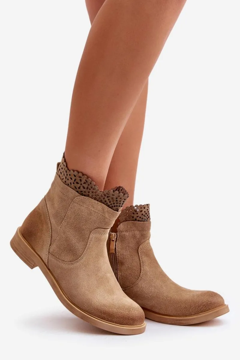 Discount Niskie Botki Damskie Na Płaskim Obcasie Zamszowe Lewski 3624 Beżowe Damskie Botki Ażurowe|Brązowe I Beżowe Botki