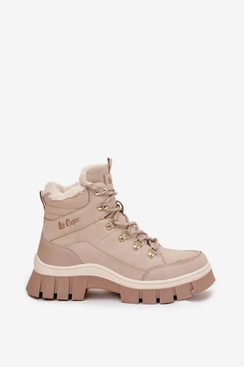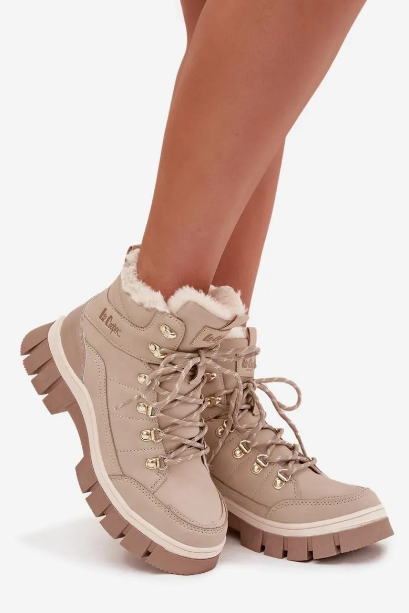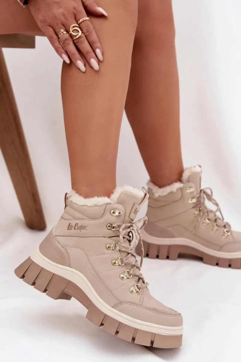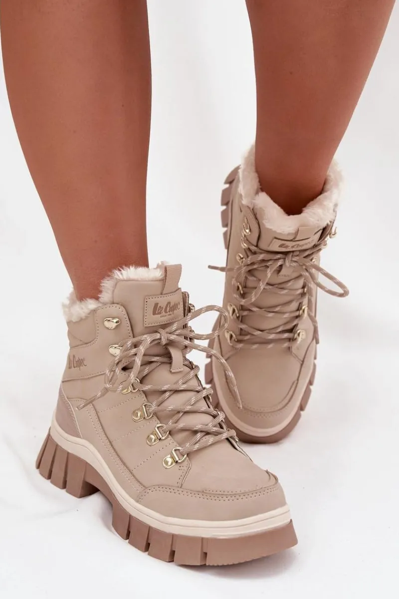 Discount Ocieplane Trapery Damskie LCJ-25-31-3910 Beżowe Damskie Trekkingowe Damskie|Botki Ocieplane