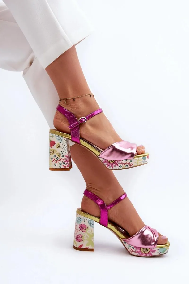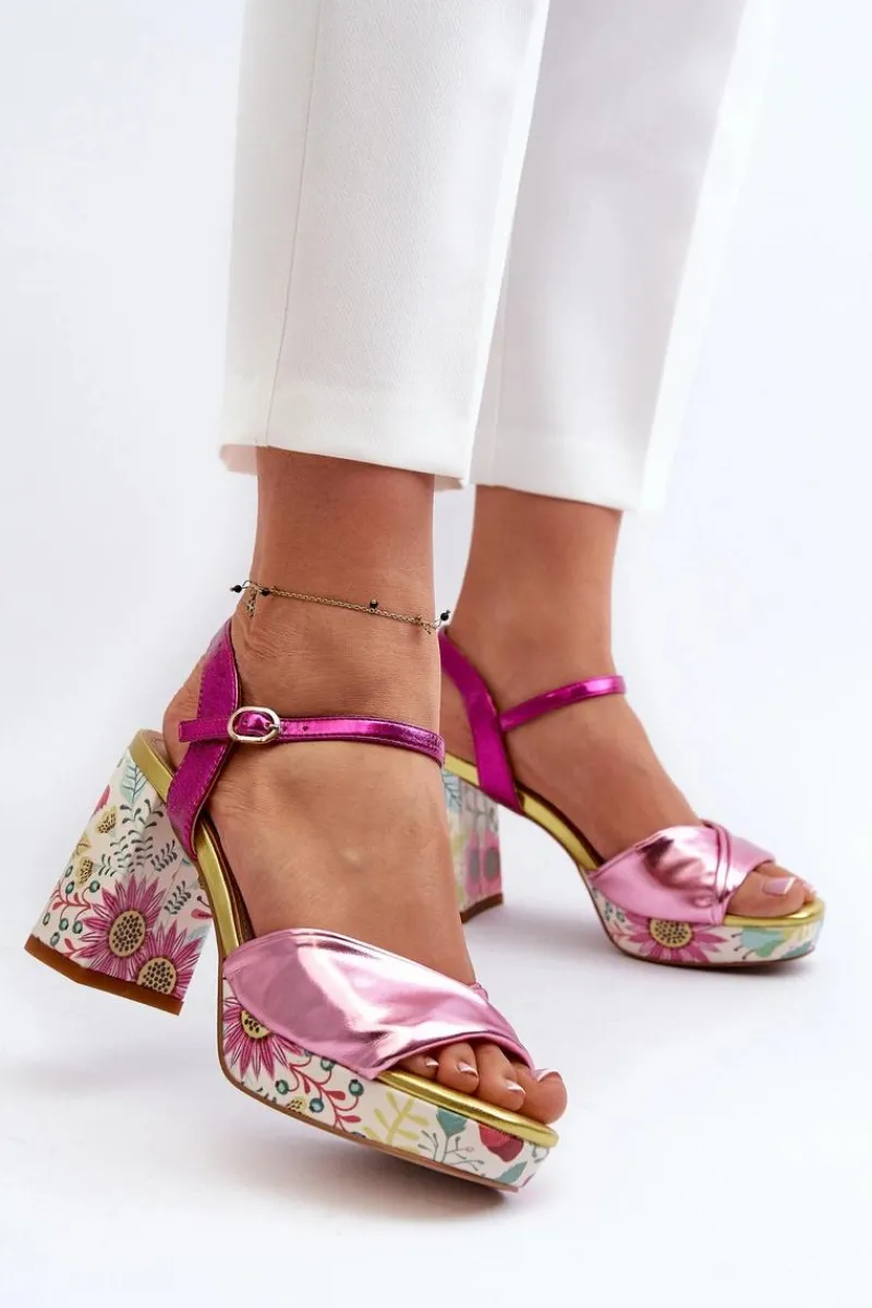 Damskie sandały ozdobione delikatnym kwiatowym wzorem, który dodaje im uroku i kobiecego wdzięku. Osadzone na stabilnym słupkowym obcasie, gwarantują stabilność na każdym kroku. Regulowany pasek ze sprzączką pozwala na precyzyjne dopasowanie do stopy. Miękka, skórzana wkładka zagwarantuje wygodę podczas noszenia. Ten elegancki fason koniecznie musi być Twój! Przy wyborze rozmiaru prosimy sugerować się poniższą tabelą rozmiarów.