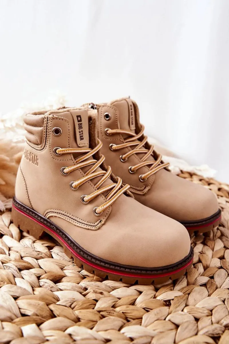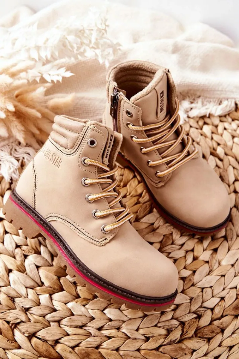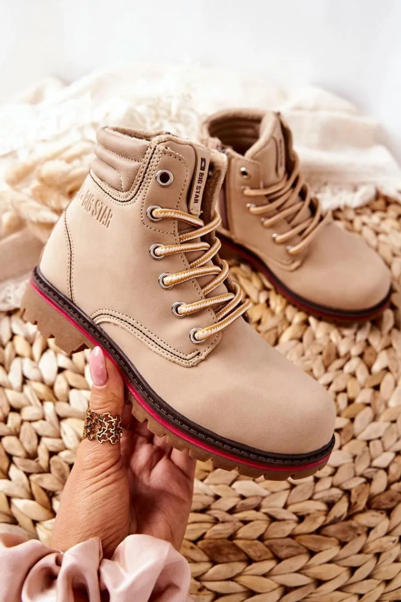 Piękne dziecięce trapery marki Big Star. Wykonane w całości z delikatnej skóry ekologicznej. Trzewiki klasycznie sznurowane z dodatkowym suwakiem na boku. Wnętrze buta ocieplone kożuszkiem. Klasyczne trapery będą idealnie komponować się z wieloma stylizacjami. Nie czekaj, zamów już dziś!Przy wyborze rozmiaru prosimy sugerować się tabelą rozmiarów dostępną po najechaniu bądź kliknięciu na dany rozmiar.