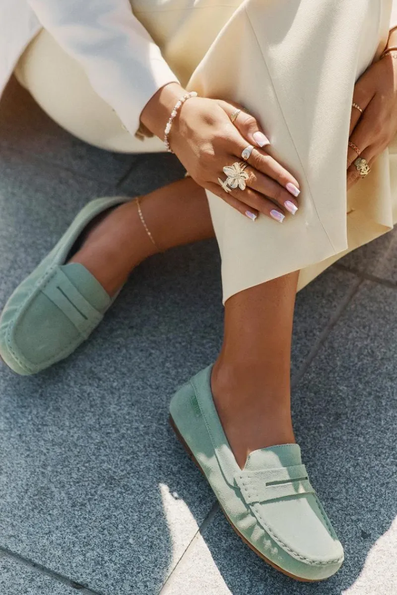 Discount Zamszowe Mokasyny Damskie Big Star RR274945 Zielone Damskie Loafersy Damskie|Mokasyny Damskie Zamszowe