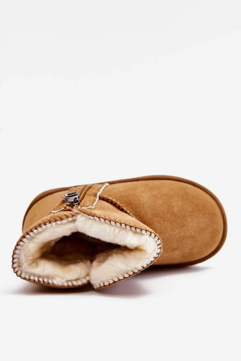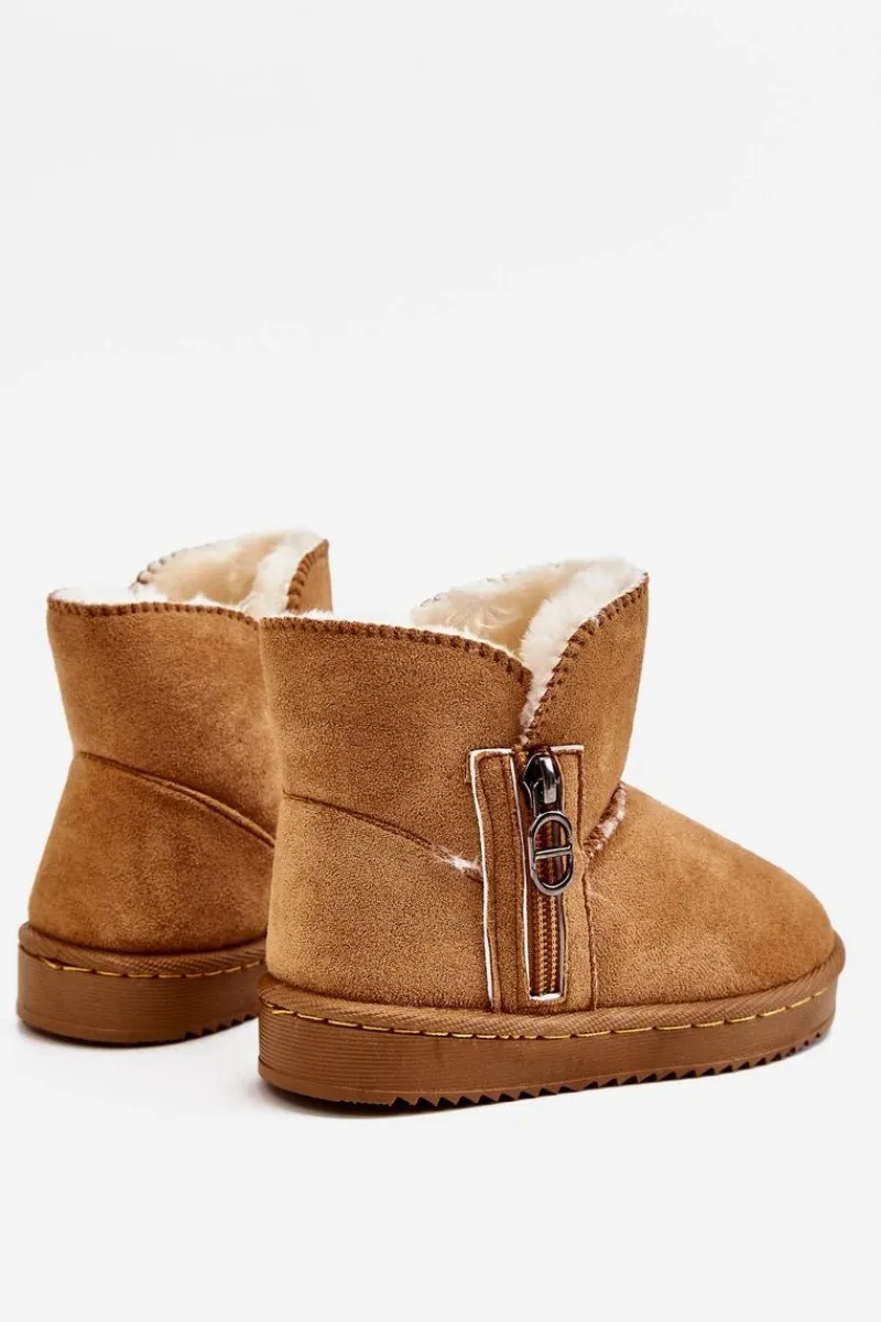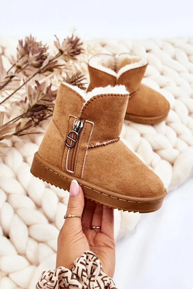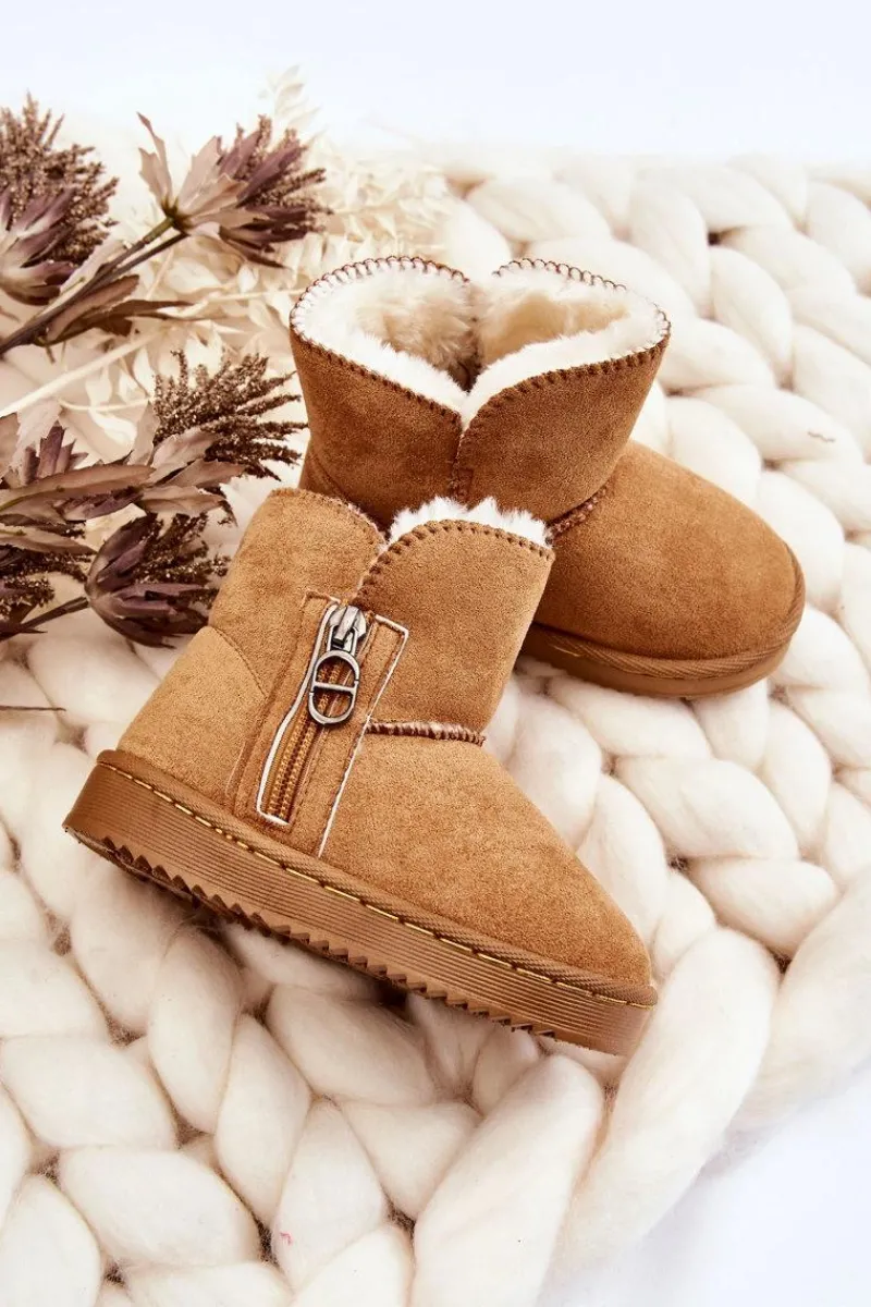 Cudowne śniegowce dziecięce wykonane z eko zamszu. Model ten posiada ozdobny zamek z boku cholewki. Wnętrze ocieplone grubym futerkiem ochroni Twoją pociechę przed zimnem. Botki zostały osadzone na platformie. Ten świetny model sprawdzi się w wielu stylizacjach! Te śniegowce koniecznie powinny znaleźć się w szafie Twojego malucha! Przy wyborze rozmiaru prosimy kierować tabelą rozmiarów.
