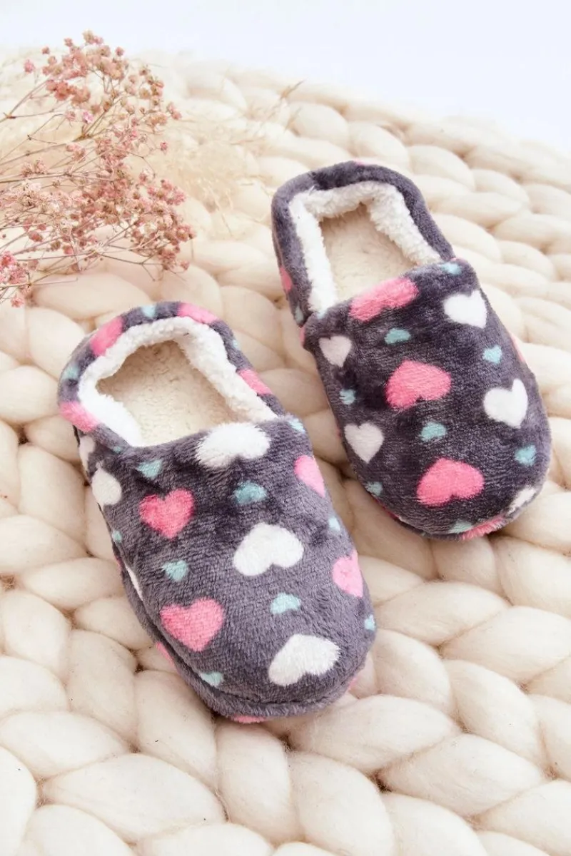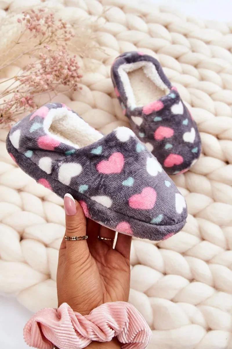 Dziewczęce|Back To School>Boto Dziecięce Ocieplane Wsuwane Papcie W Serca Szare Meyra