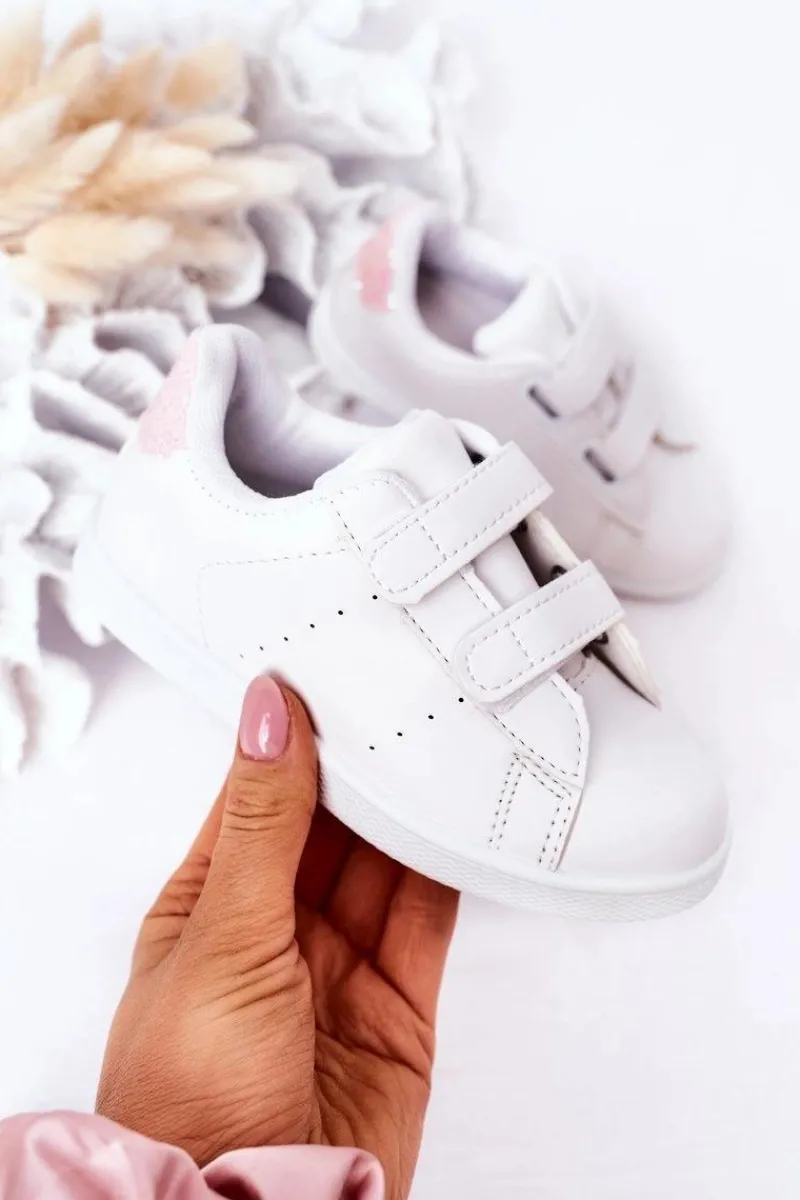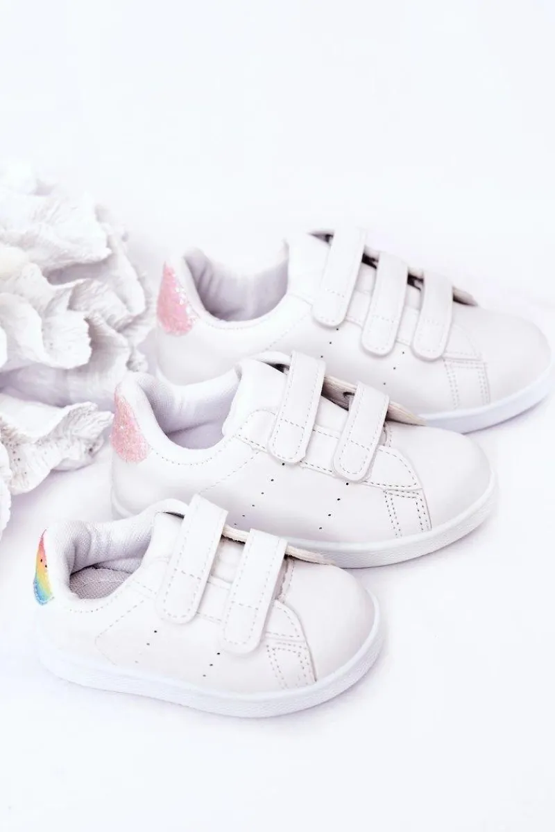 Wyjątkowe tenisówki dziecięce ozdobione brokatem. Trampki wykonane są z eko skóry, dobrze dopasowują się do kształtu stopy dzięki zapięciu na rzep. Koniecznie sprawdź całą naszą kolekcję butów dziecięcych! Rozmiary od 30 do 35 posiadają zapięcie na trzy rzepy. Przy wyborze rozmiaru prosimy sugerować się tabelą rozmiarów.