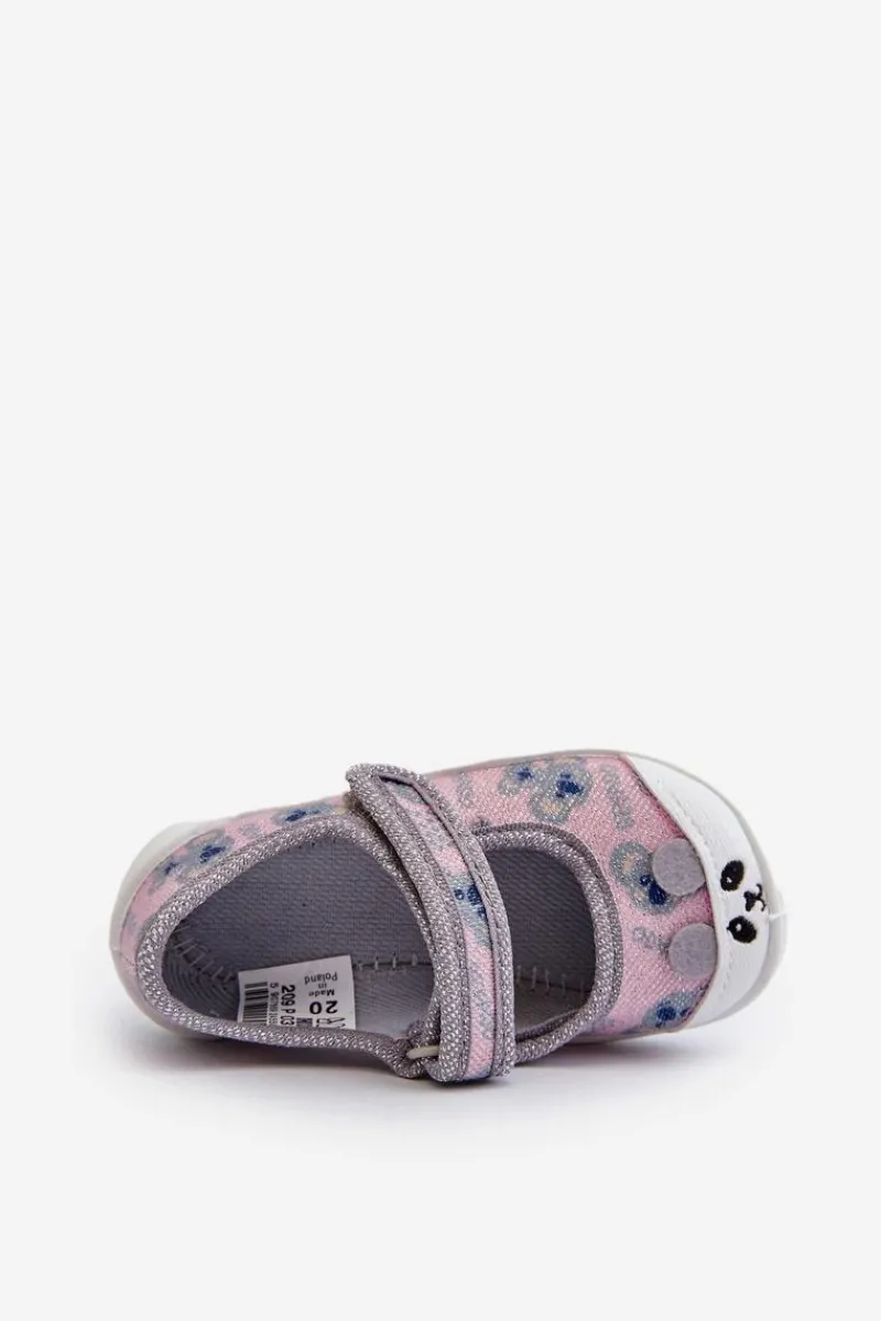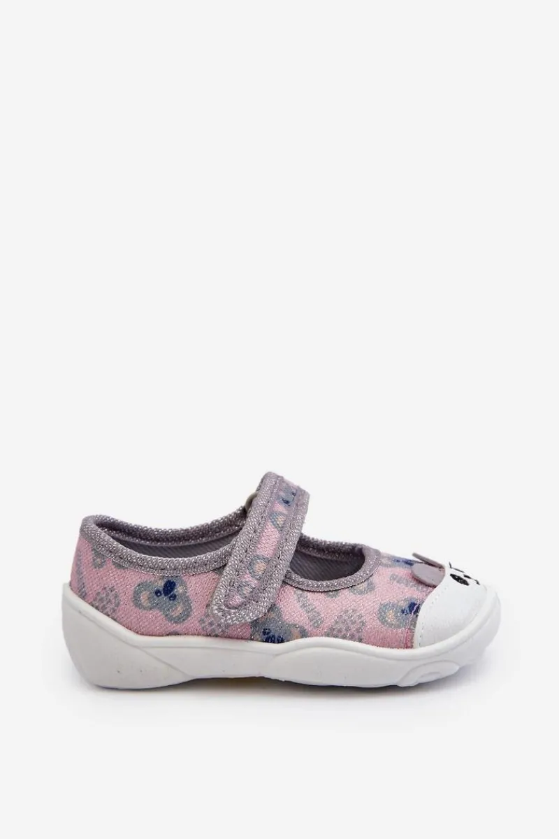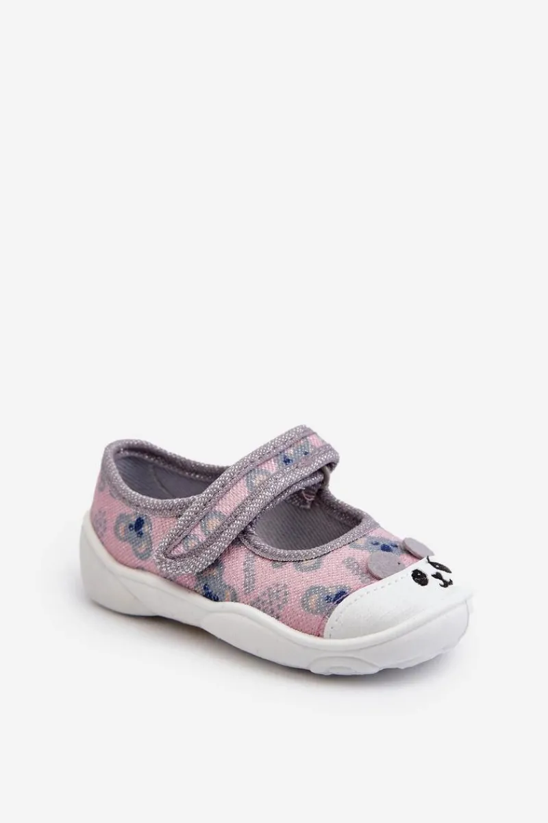 Dziewczęce|Balerinki Dziecięce>BEFADO Kapcie Baleriny Z Misiem 209P038 Szaro-Różowy
