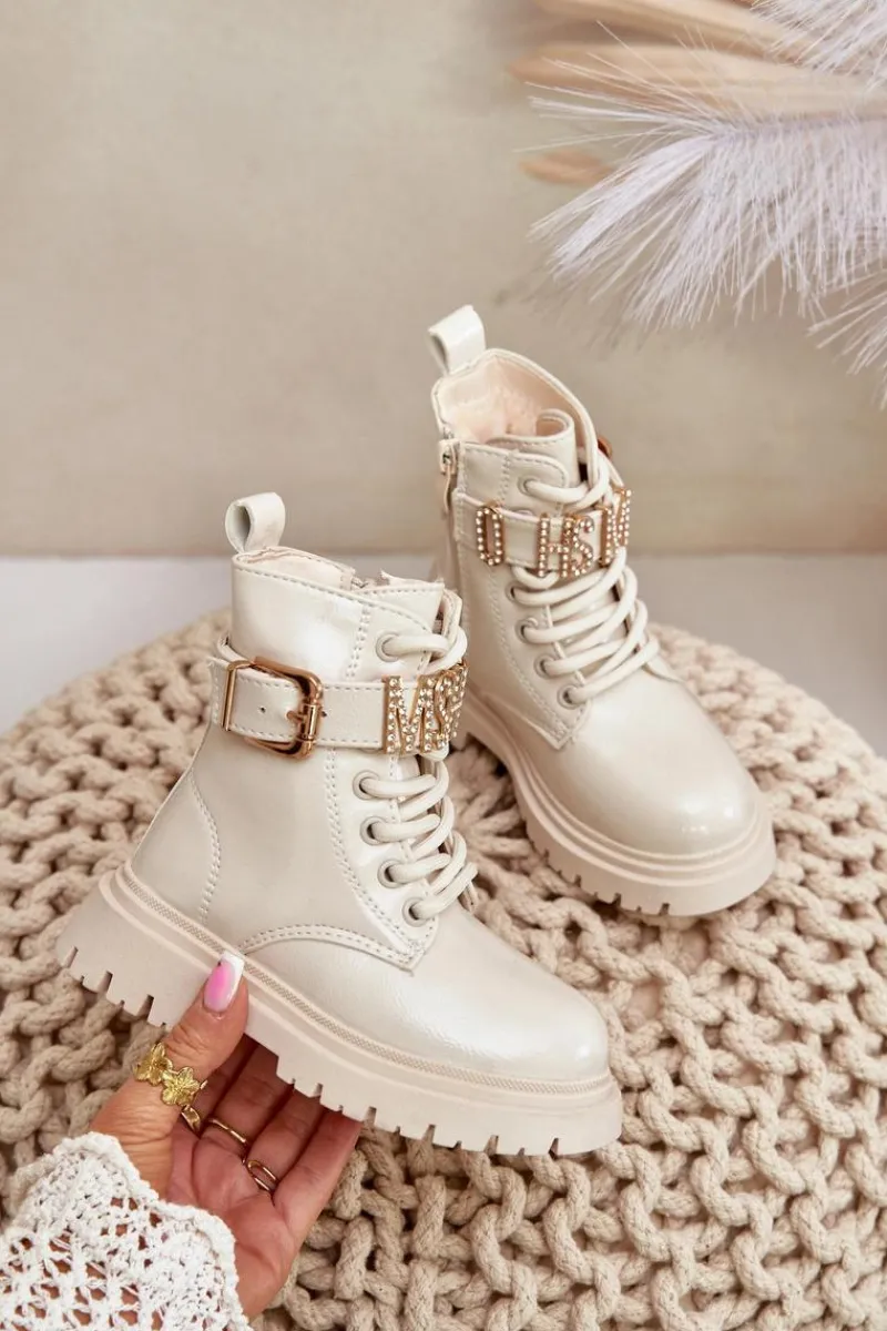 Dziecięce botki z eko skóry to praktyczne i stylowe rozwiązanie na chłodne dni. Zapinane na zamek i sznurowane, dzięki czemu idealnie dopasowują się do stopy. Ocieplone miękkim futerkiem, zapewniają ciepło i komfort. Cholewkę zdobi ozdobny pasek, który dodaje uroku i wyjątkowego charakteru. Przy wyborze rozmiaru prosimy kierować tabelą rozmiarów.