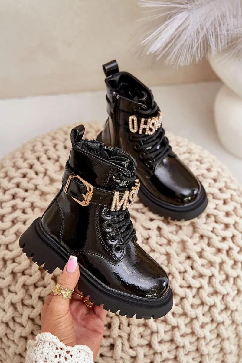 Dziecięce botki z eko skóry to praktyczne i stylowe rozwiązanie na chłodne dni. Zapinane na zamek i sznurowane, dzięki czemu idealnie dopasowują się do stopy. Ocieplone miękkim futerkiem, zapewniają ciepło i komfort. Cholewkę zdobi ozdobny pasek, który dodaje uroku i wyjątkowego charakteru. Przy wyborze rozmiaru prosimy kierować tabelą rozmiarów.