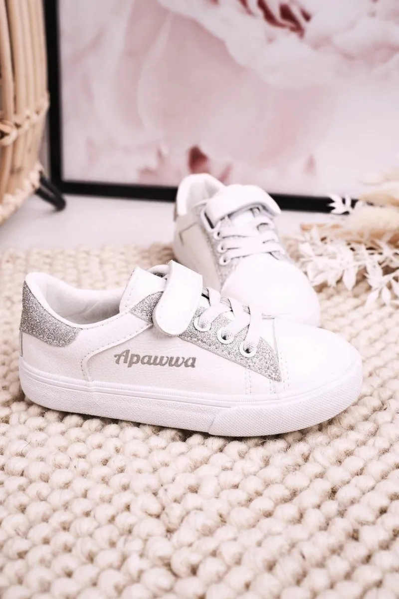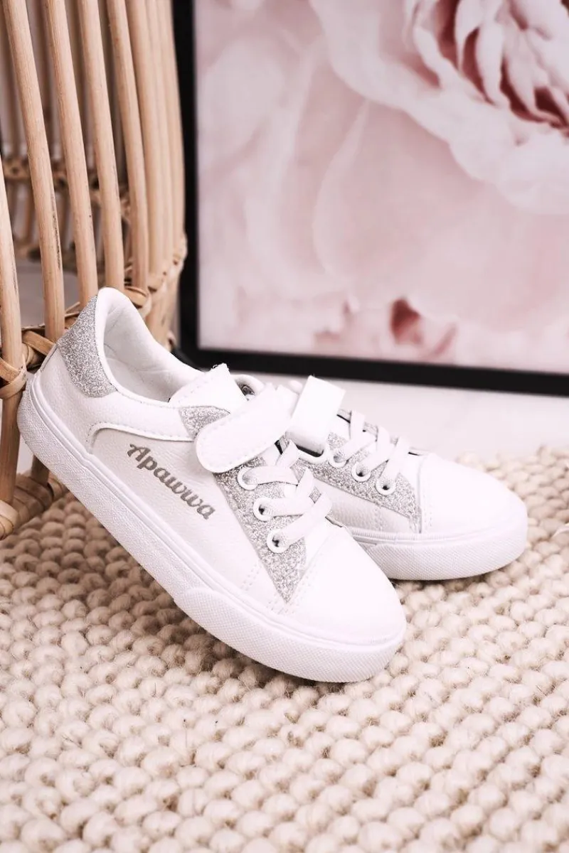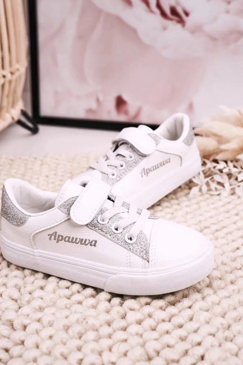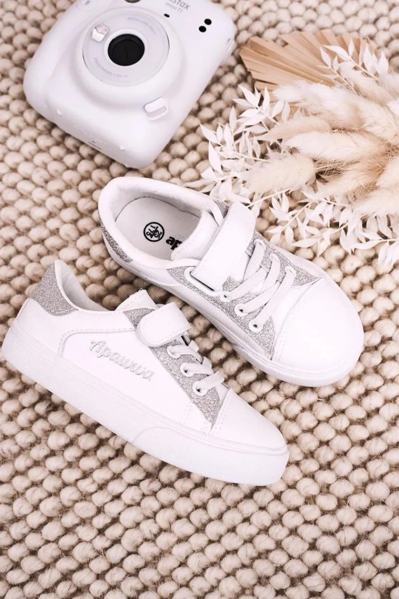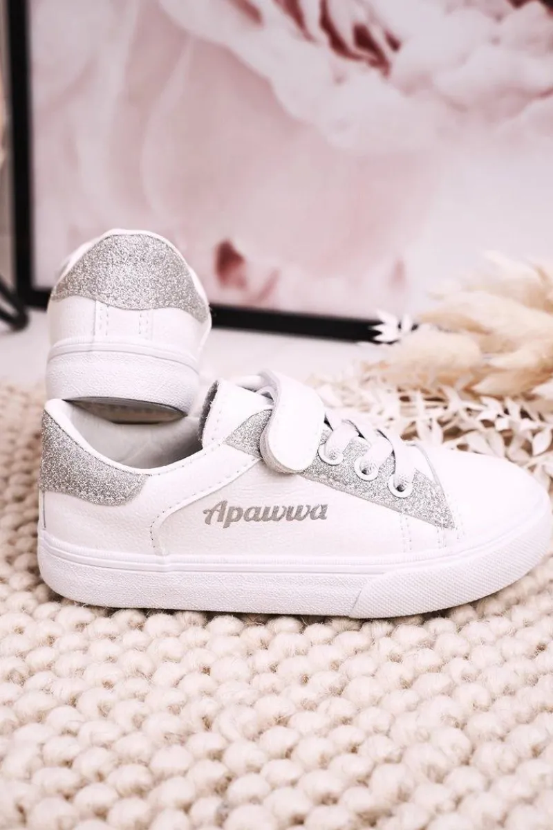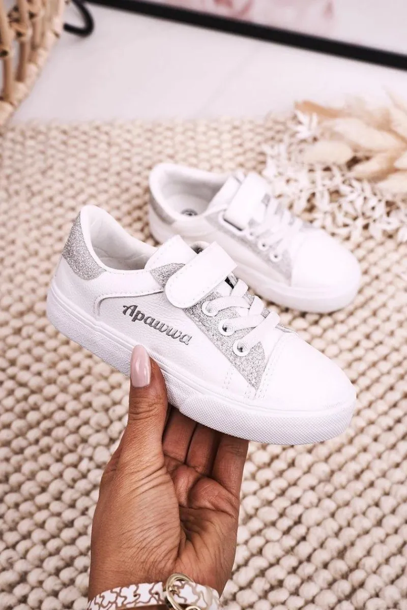 Dziecięce trampki ozdobione delikatnym brokatem. Trampki wykonane są z wysokiej jakości eko skóry. Posiadają antypoślizgową podeszwę oraz miękką wkładkę. Koniecznie sprawdź całą naszą kolekcję dziecięcych trampek. Przy wyborze rozmiaru prosimy sugerować się tabelą rozmiarów.