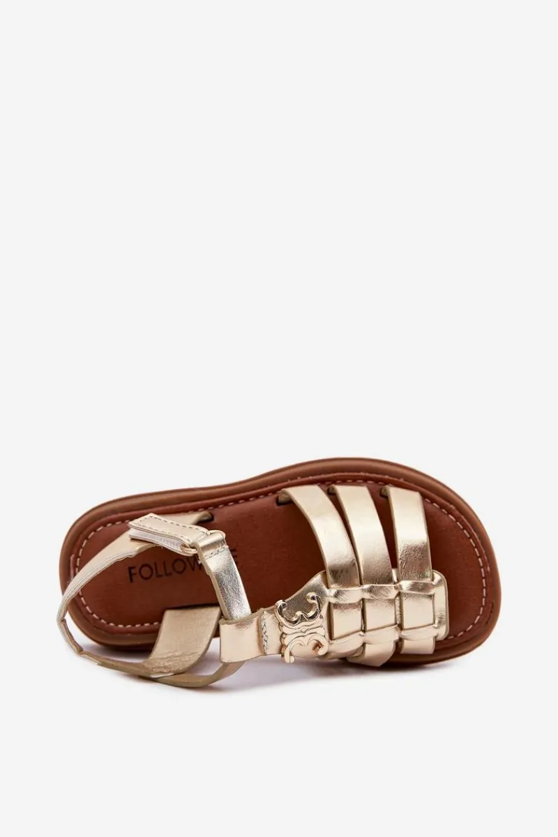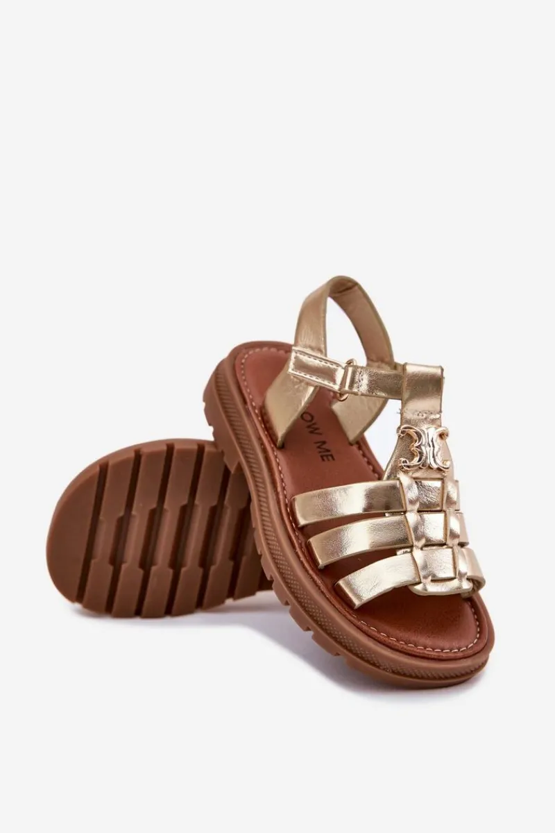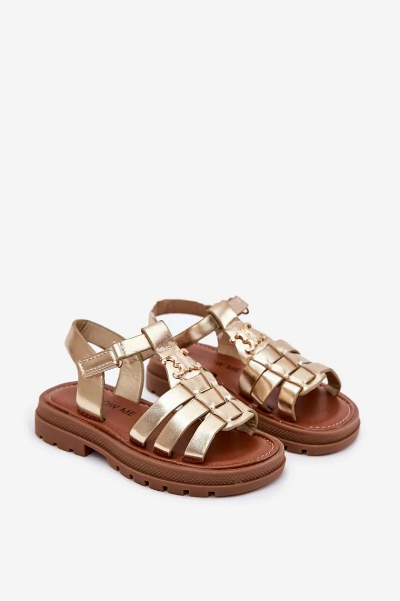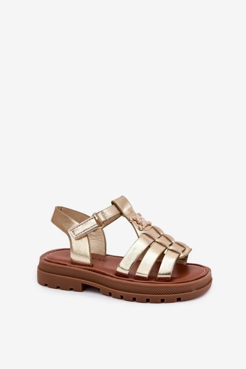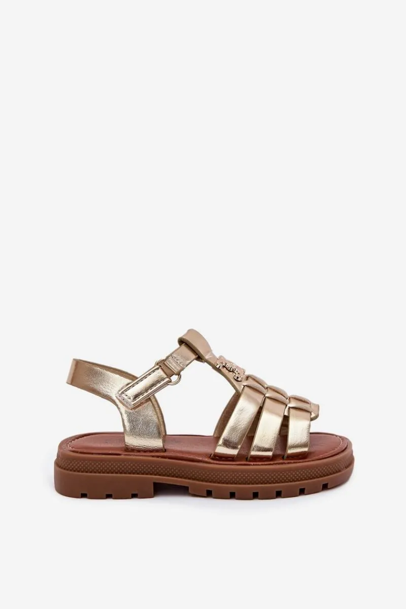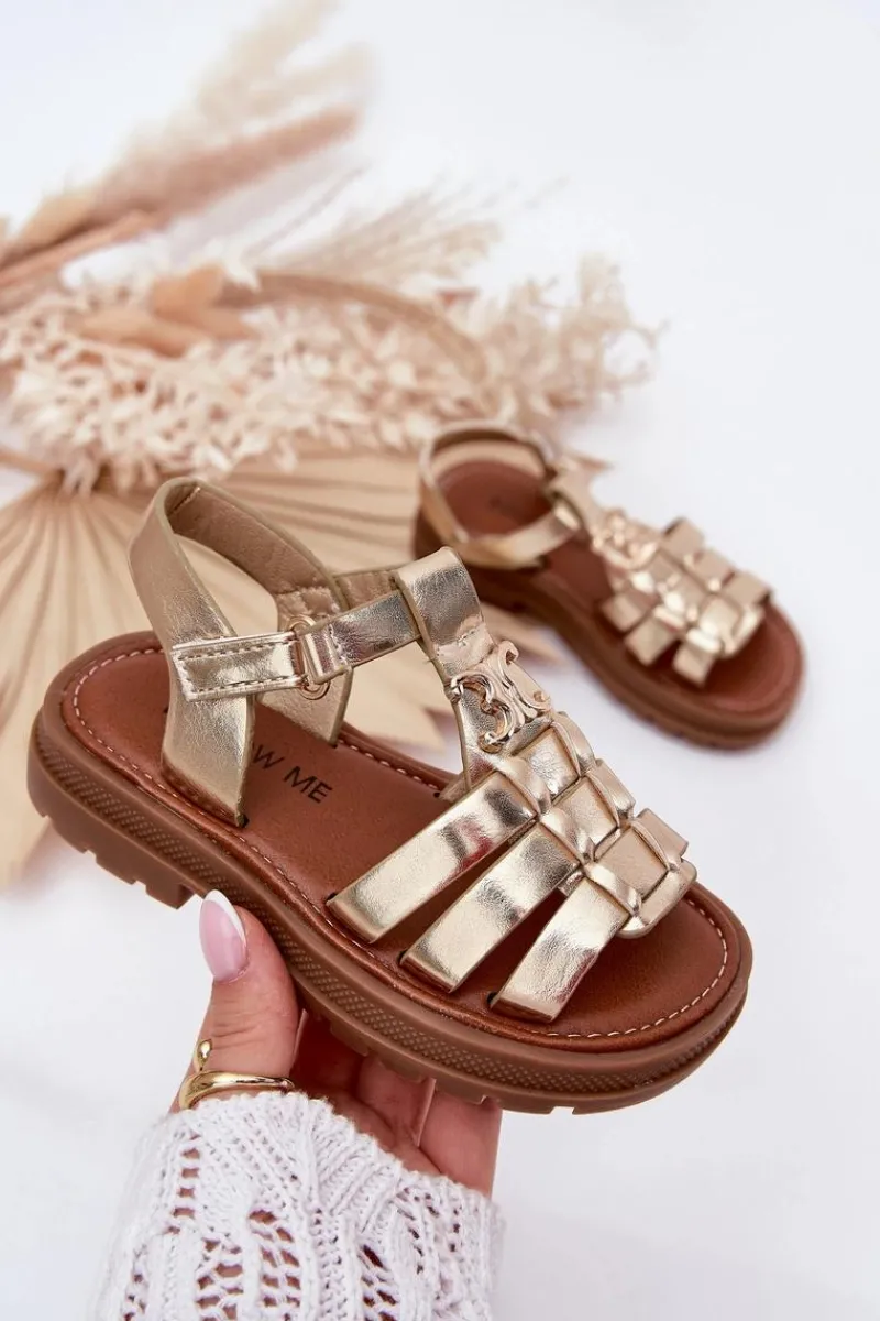 Sandałki dla dziewczynek z eko skóry to doskonała propozycja na ciepłe dni. Zapinane na rzep, zapewniają łatwość zakładania i doskonałe dopasowanie do stopy. Z przodu znajdują się paski oraz ozdobny złoty detal, który dodaje im wyjątkowego uroku. Miękka wkładka gwarantuje komfort przez cały dzień. Te sandałki są idealne na codzienne spacery, zabawy na świeżym powietrzu oraz bardziej uroczyste okazje. Przy wyborze rozmiaru prosimy sugerować się tabelą rozmiarów.