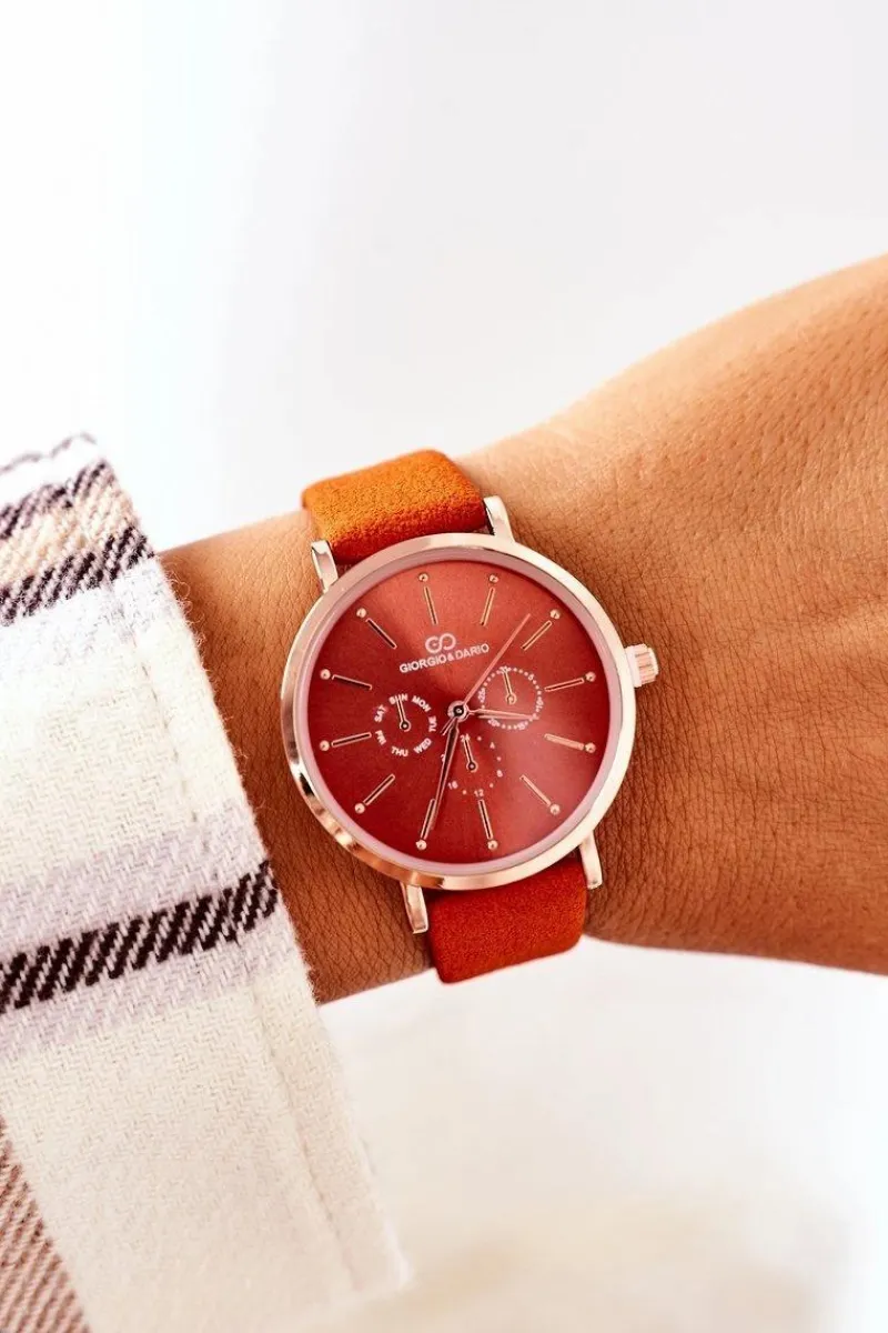 Giorgio&Dario Zegarek Na Skórzanym Pasku Pomarańczowy