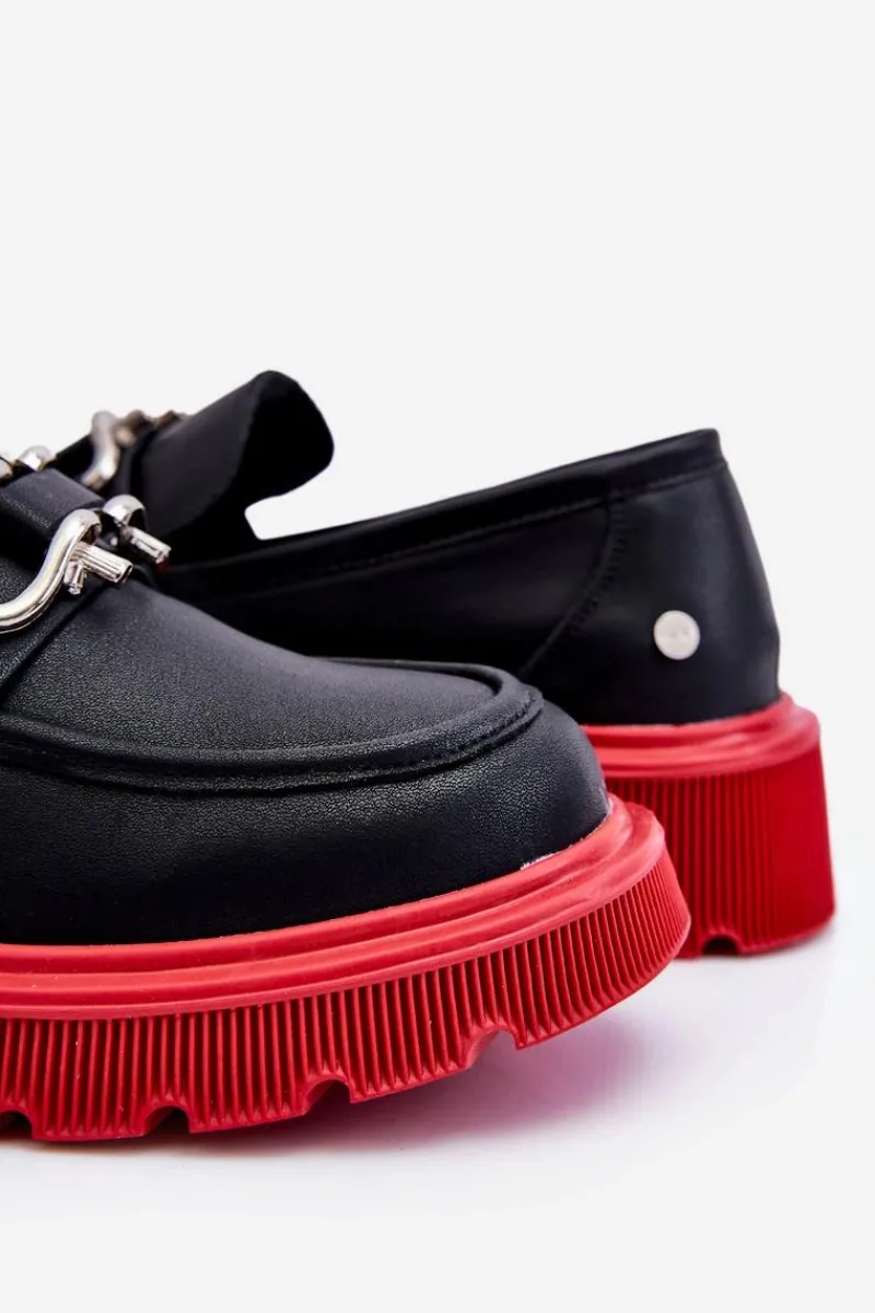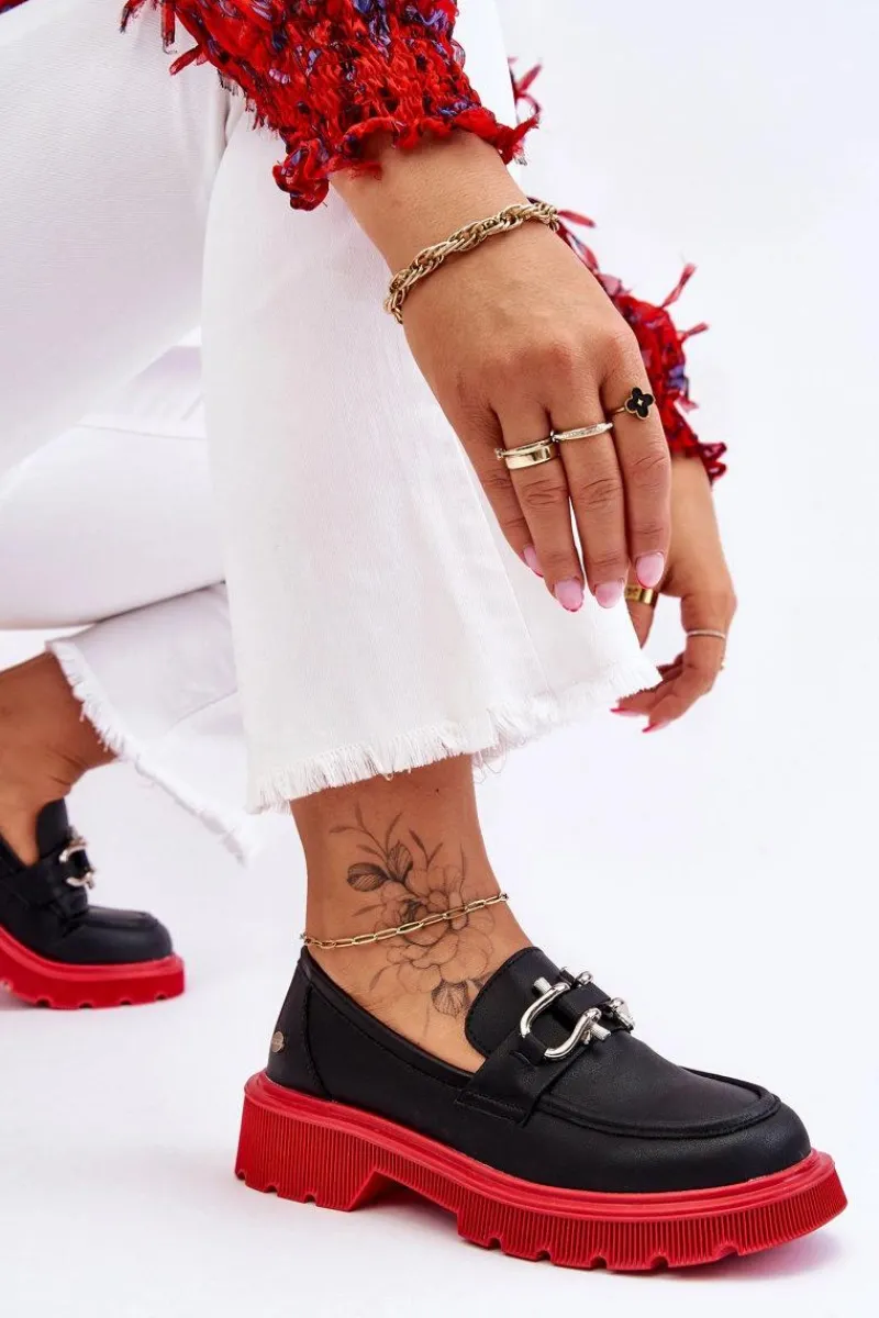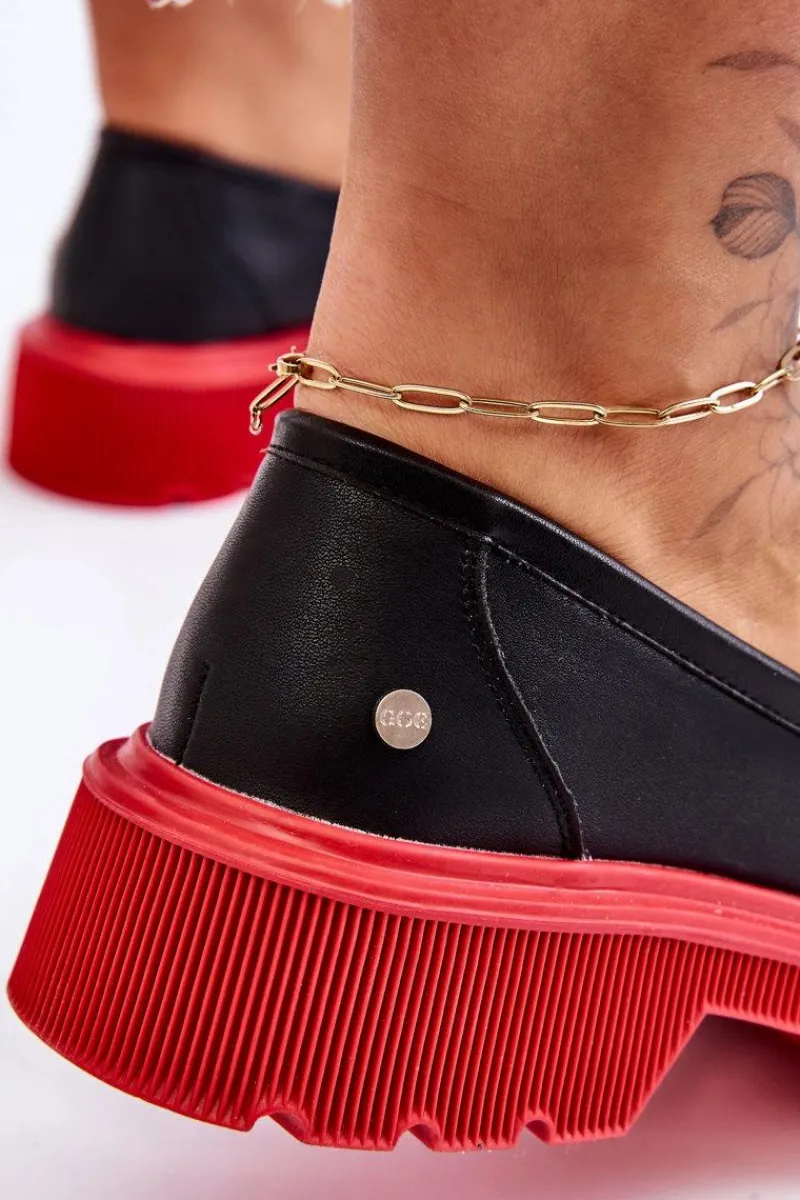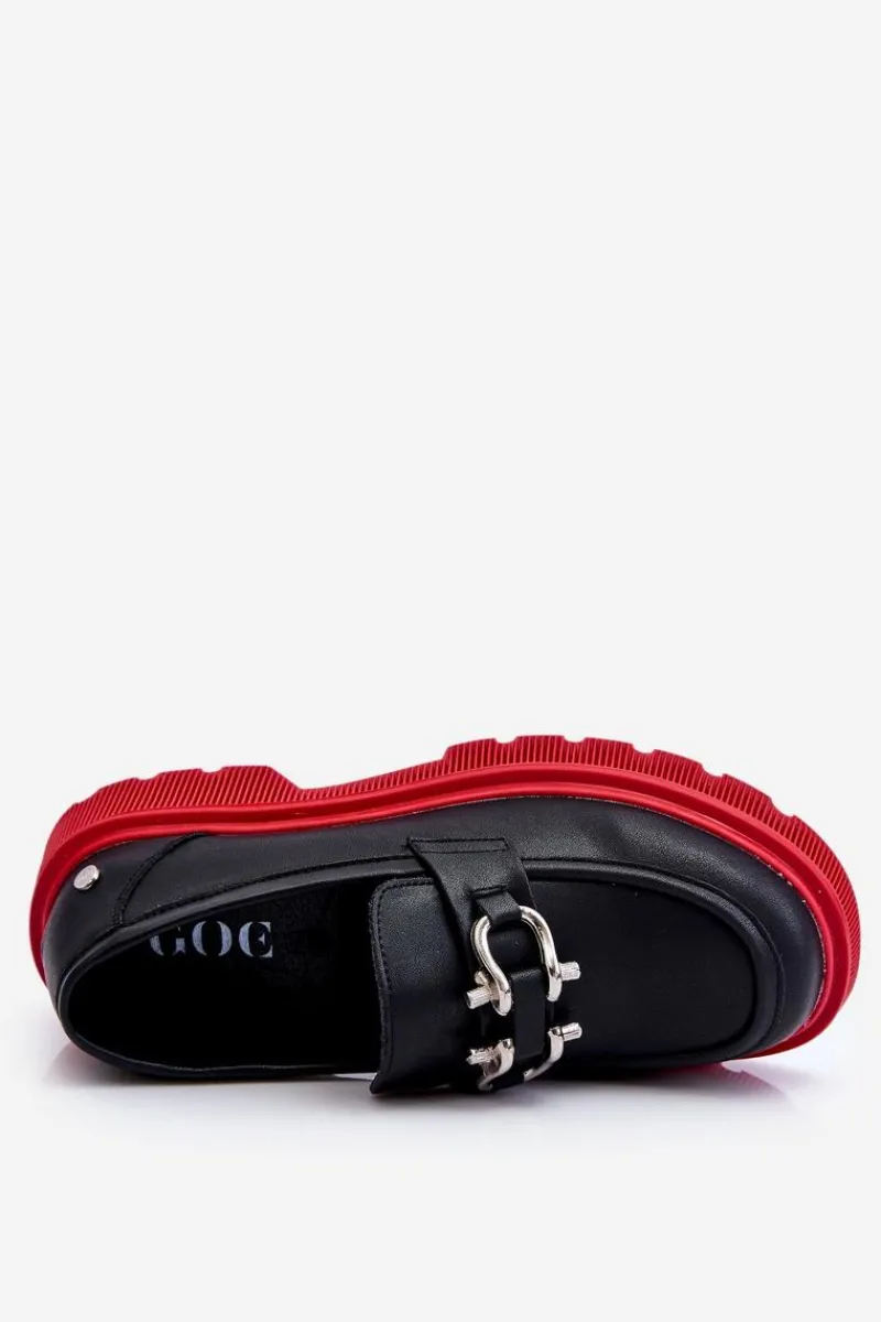GOE Skórzane Mokasyny Z Ozdobą LL2N4040 Czarno-Czerwone