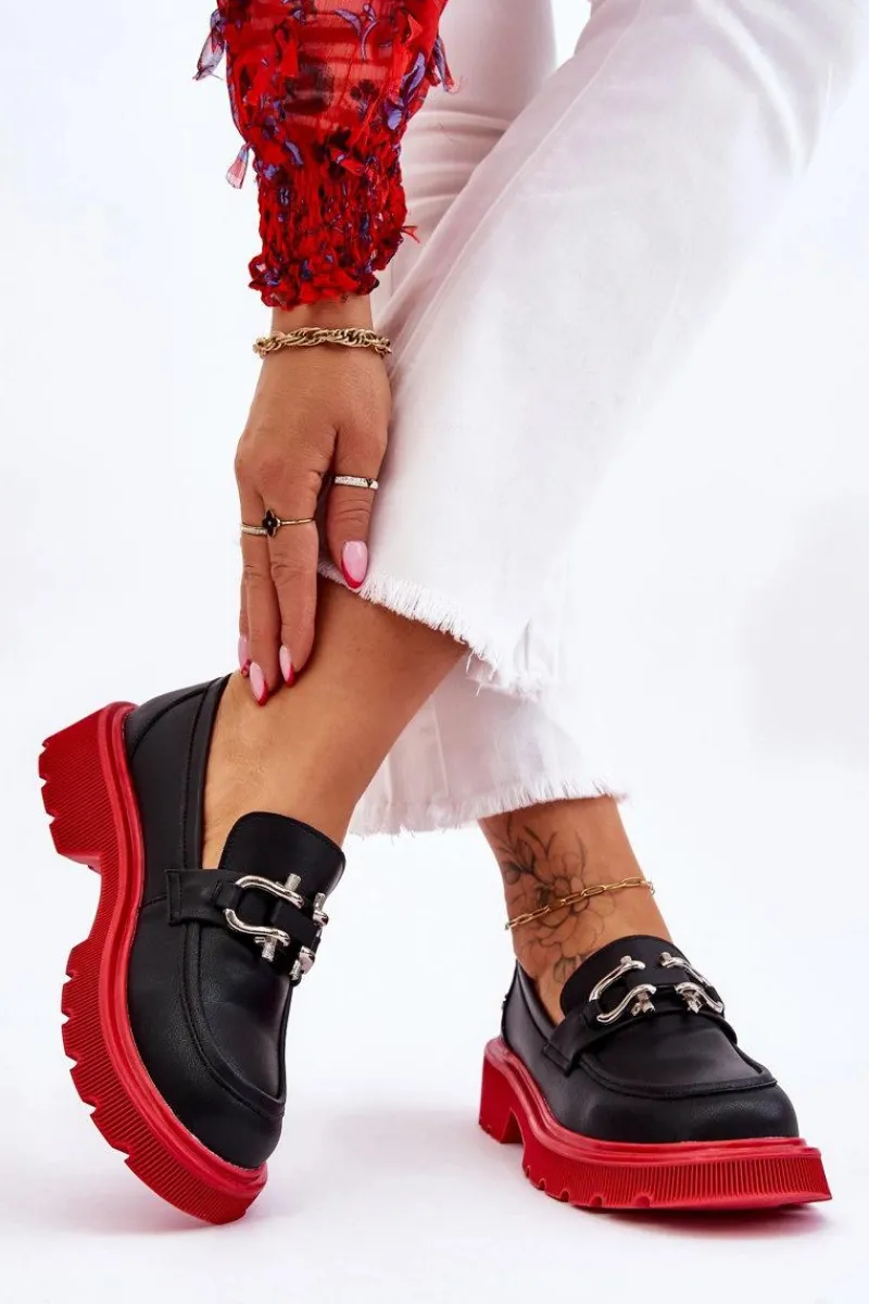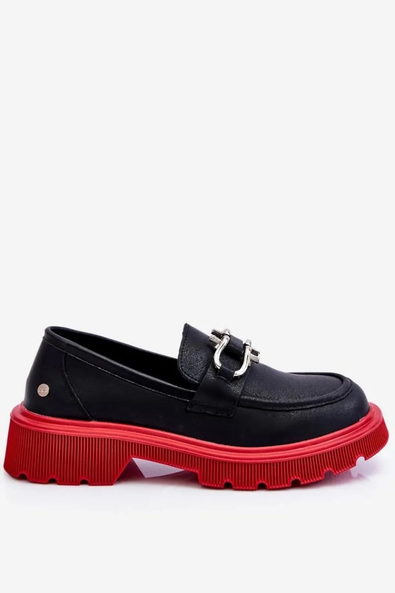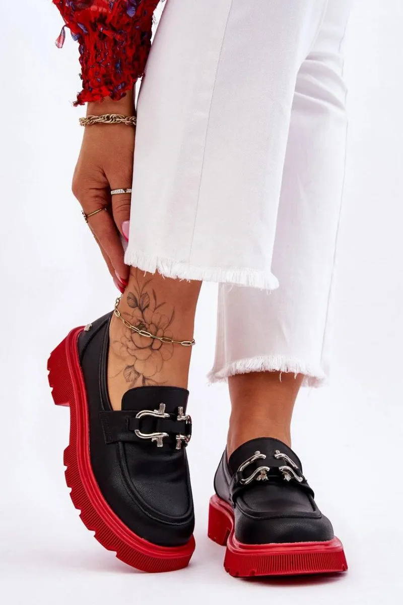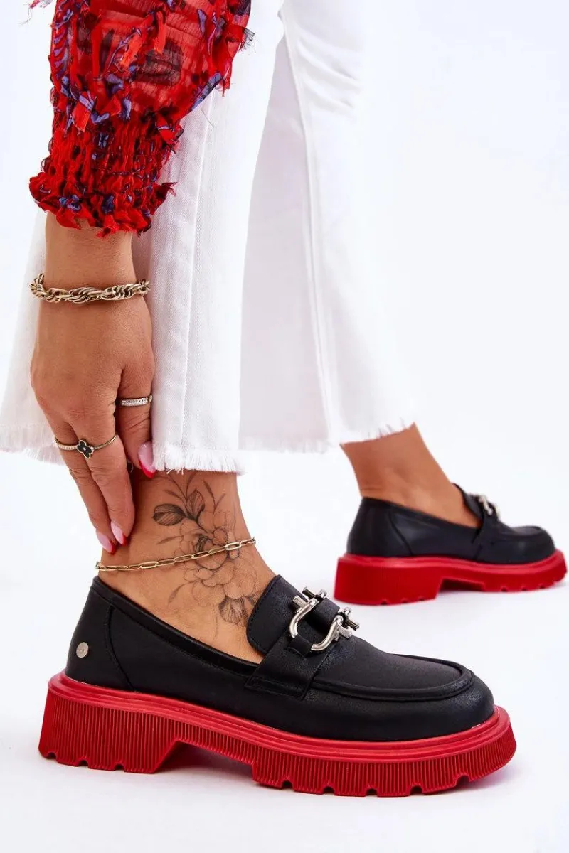 GOE Skórzane Mokasyny Z Ozdobą LL2N4040 Czarno-Czerwone
