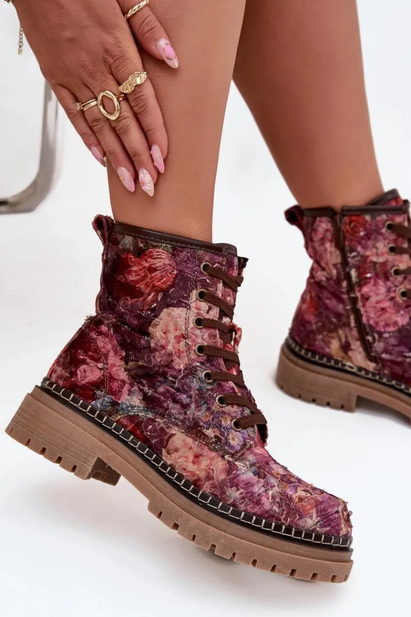 Botki damskie marki Artiker to wyjątkowy model, który łączy komfort noszenia z efektownym wyglądem. Wykonane z dbałością o detale, wyróżniają się kwiecistym wzorem 3D na cholewce, który nadaje im oryginalnego, kobiecego charakteru i sprawia, że przyciągają wzrok. Osadzone na platformie z płaskim obcasem zapewniają wygodę i stabilność podczas codziennego użytkowania. Dzięki połączeniu sznurowania z bocznym zamkiem buty są praktyczne – łatwe w zakładaniu i dobrze dopasowują się do stopy. Ocieplane wnętrze gwarantuje komfort oraz ciepło w chłodniejsze dni, dzięki czemu model idealnie sprawdzi się w sezonie jesienno-zimowym. To botki, które będą doskonałym uzupełnieniem zarówno codziennych, jak i bardziej oryginalnych stylizacji. Przy wyborze rozmiaru prosimy sugerować się tabelą rozmiarów.