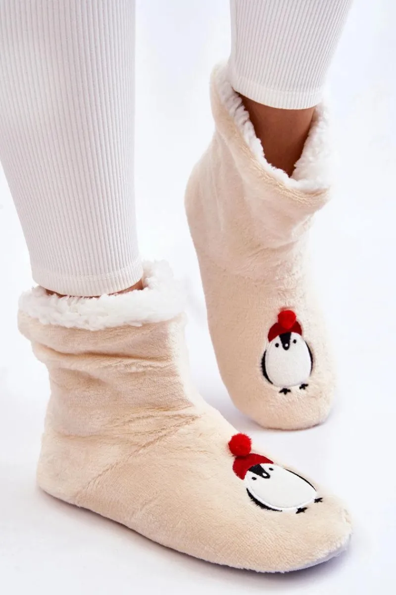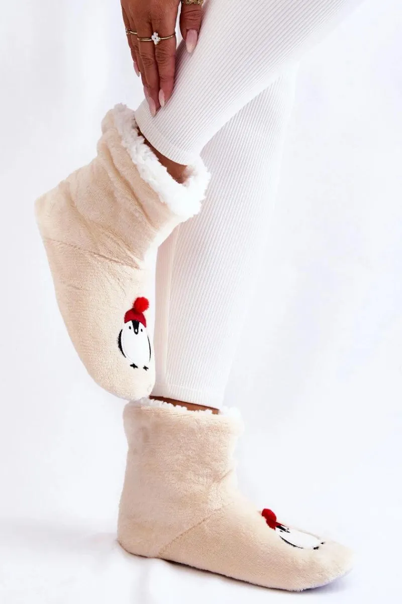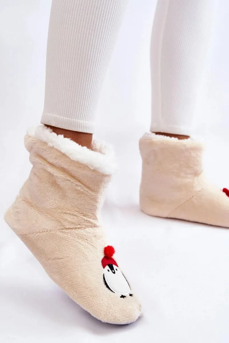 Idealne papcie damskie dla każdego zmarzlucha! Zostały wykonane z miękkiego materiału tekstylnego. Wewnątrz posiadają ocieplenie w postaci miękkiego kożuszka. Podeszwa z gumowego tworzywa z wypustkami jest antypoślizgowa. Papcie te świetnie izolują przed zimnem. Niezwykle wygodne i komfortowe podczas użytkowania. Ozdobione z przodu uroczym pingwinkiem. Przy wyborze rozmiaru prosimy kierować tabelą rozmiarów.