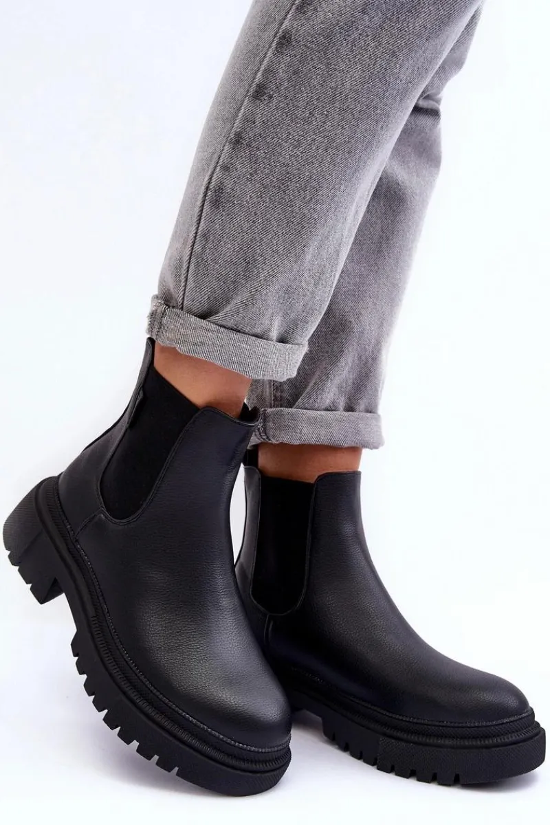 Wsuwane botki marki Big Star sprawdzą się niemalże w każdej stylizacji! Model ten został wykonany z eko skóry. Osadzone na płaskim obcasie i platformie z bieżnikiem. Środek ocieplony futerkiem. Noski zaokrąglone. Na cholewce elastyczne wstawki. Model ten posiada dodatkowo usztywniany zapiętek. Przy wyborze rozmiaru prosimy sugerować się tabelą rozmiarów.
