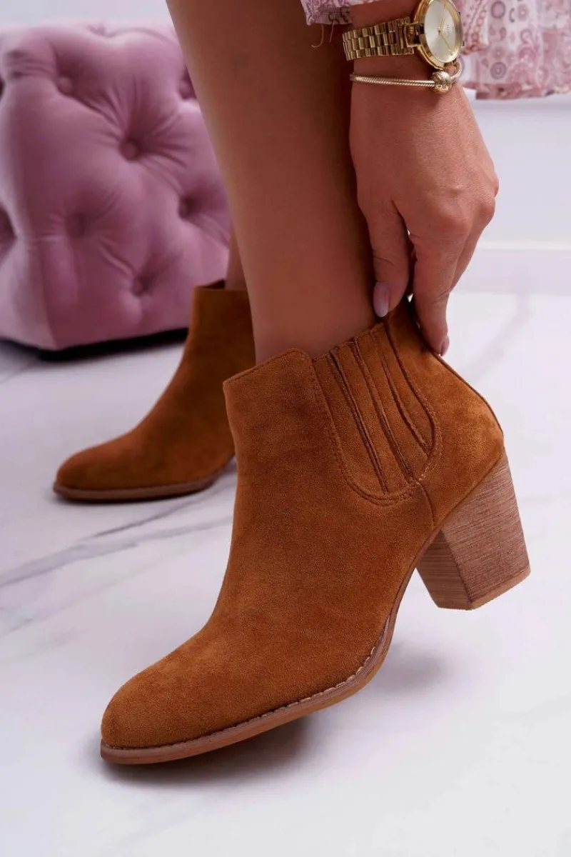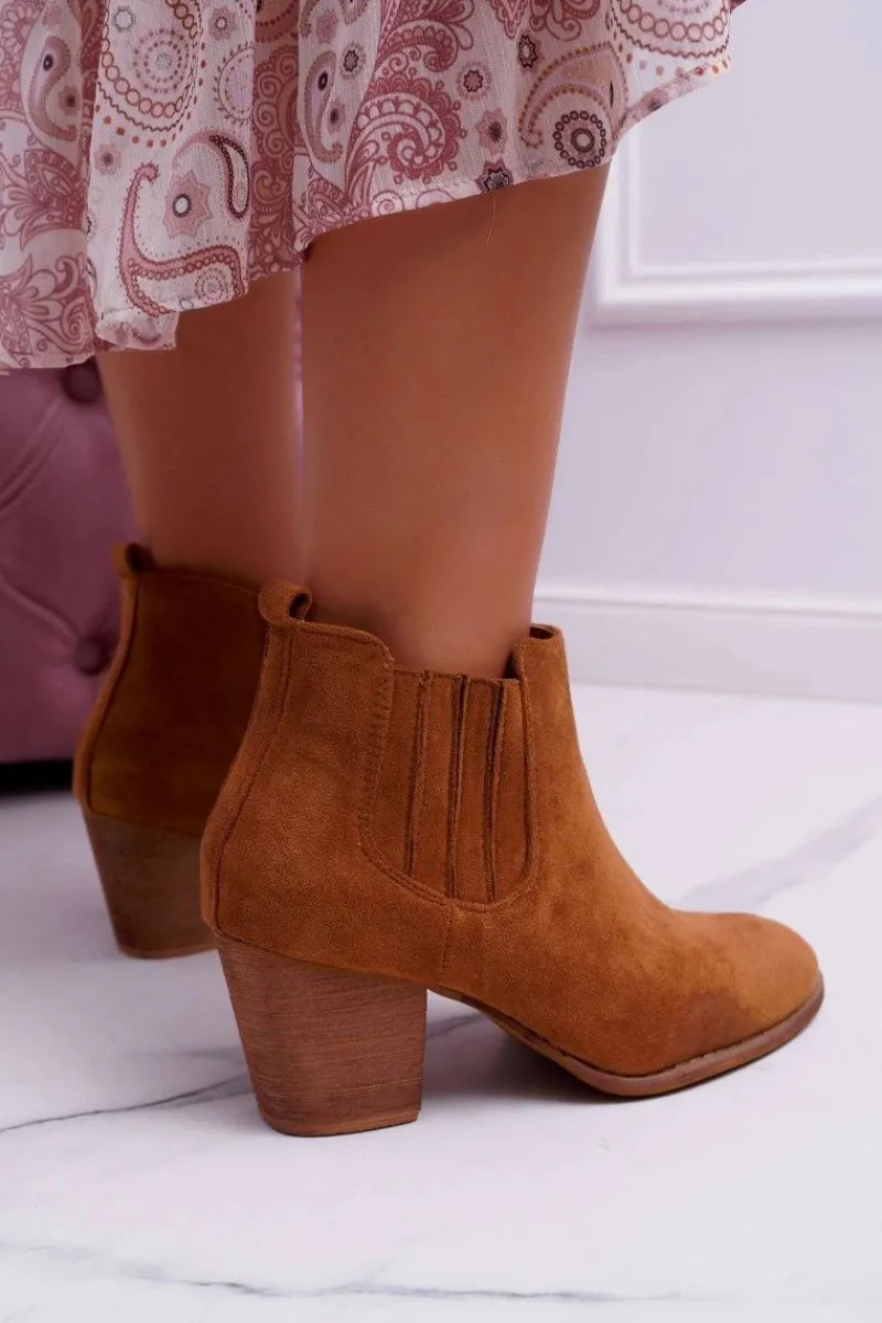 Hot Boto Botki Damskie Na Obcasie Zamszowe Camel Gomen