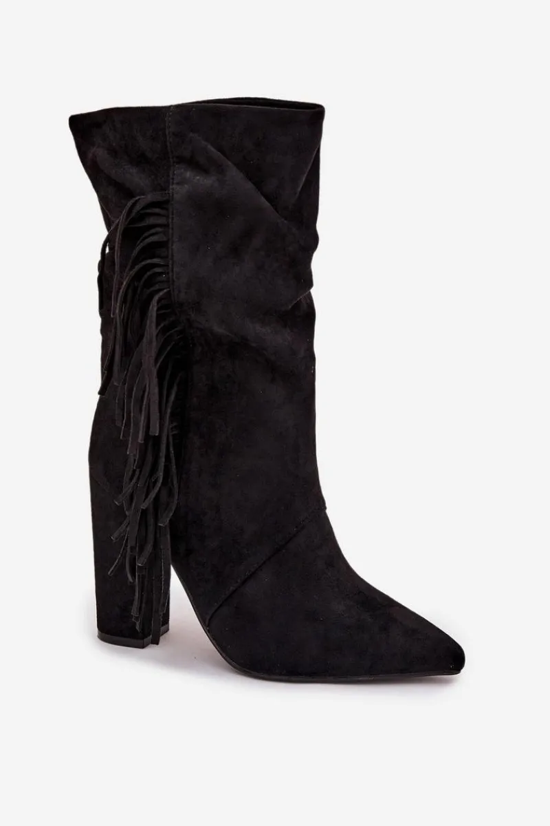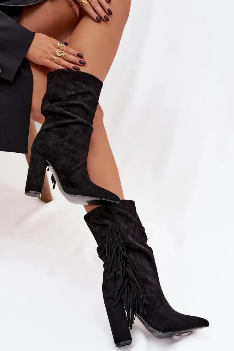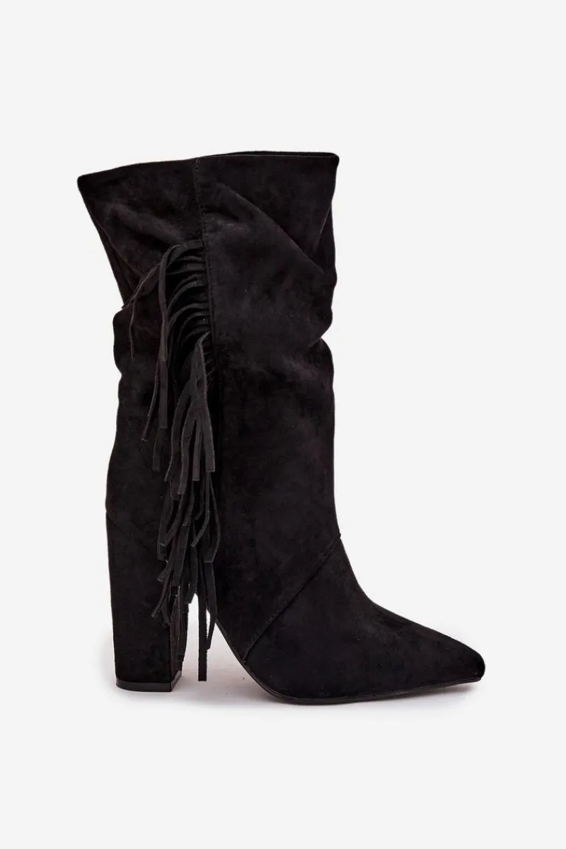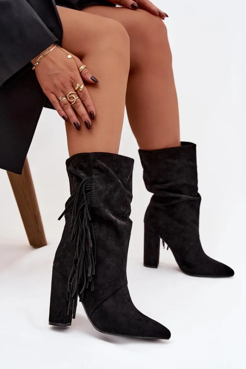 FAQ — Botki damskie na słupku z frędzlami i marszczeniem ocieplane czekoladowe Darlina