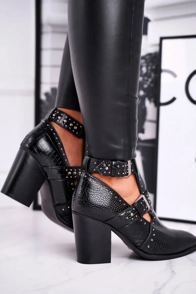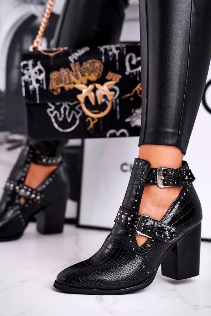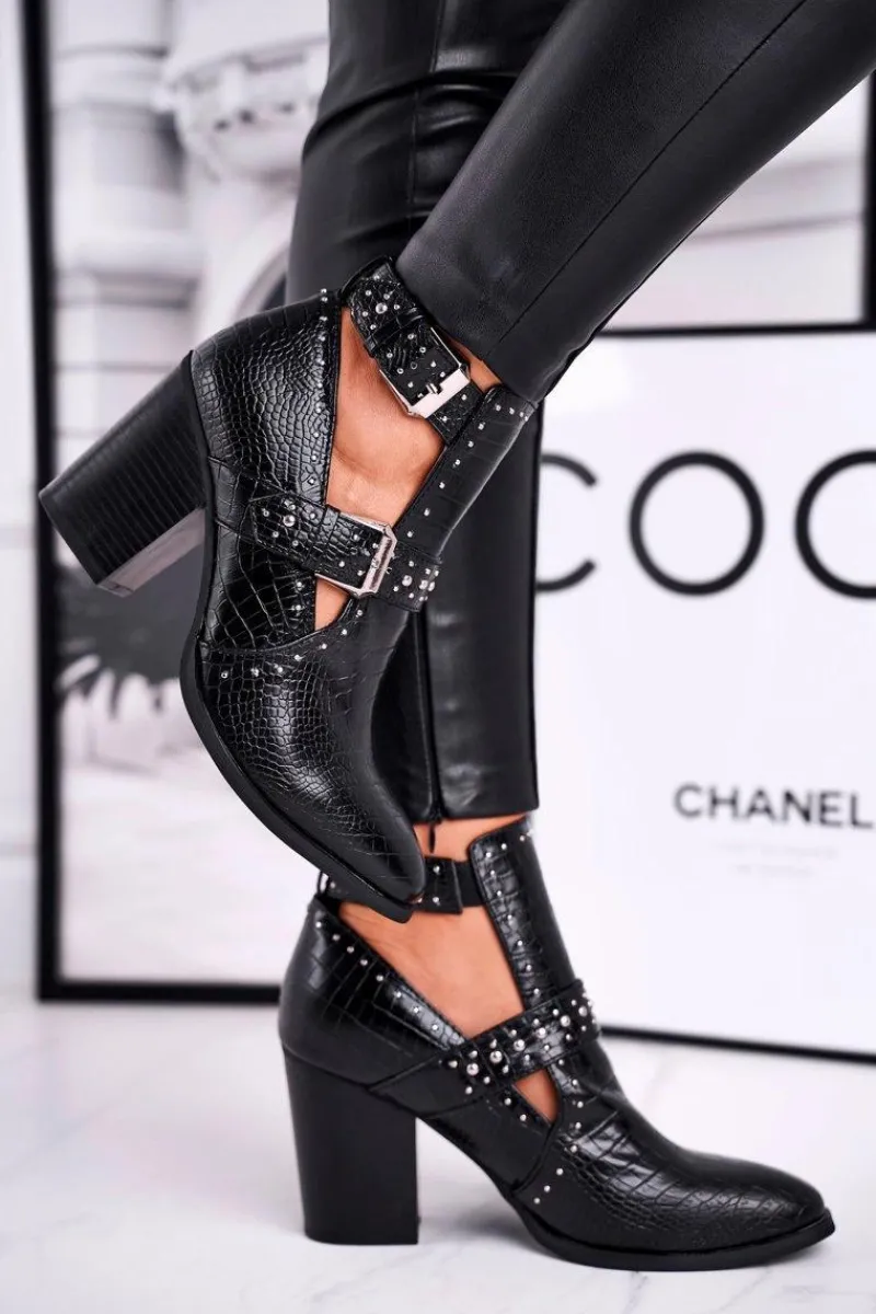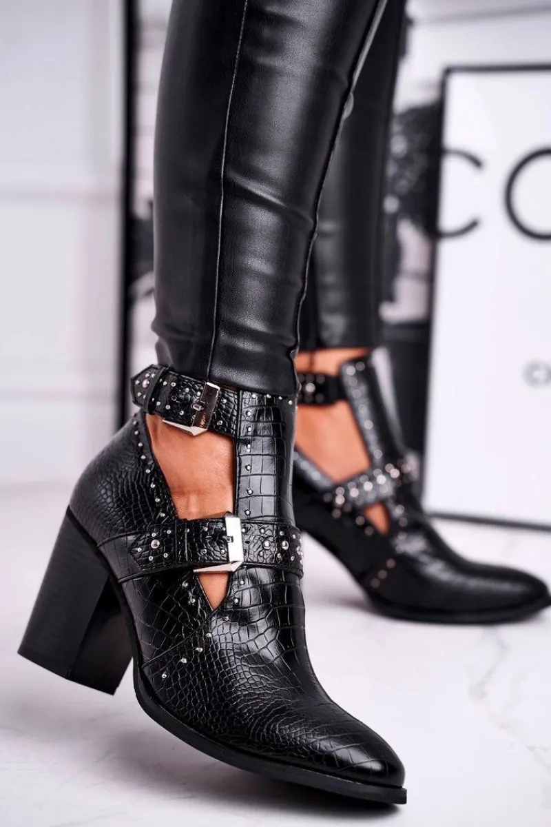 Hot Boto Botki Damskie Z Wycięciami Croco Czarne Aria