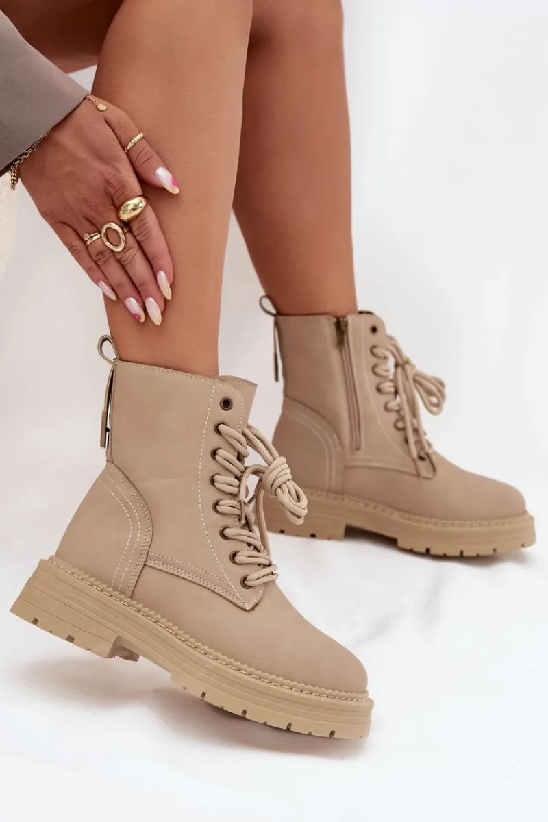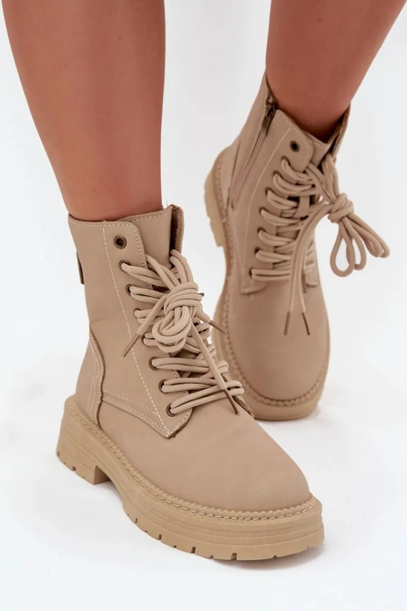 Botki damskie z eko skóry to świetny wybór na chłodniejsze dni. Zapinane na zamek i sznurowane, umożliwiają idealne dopasowanie do stopy. Noski zaokrąglone zapewniają wygodę, a wyjmowana wkładka z pianki, pokryta materiałem, gwarantuje komfort przez cały dzień. Te botki będą doskonałym uzupełnieniem codziennych stylizacji. Przy wyborze rozmiaru prosimy sugerować się tabelą rozmiarów.