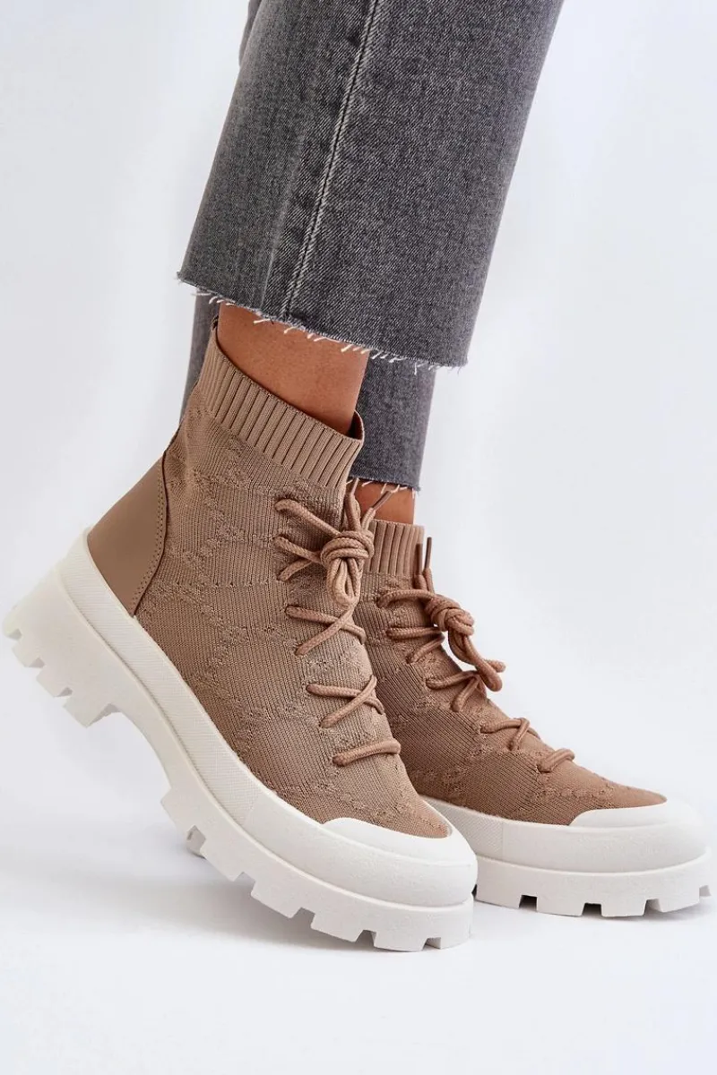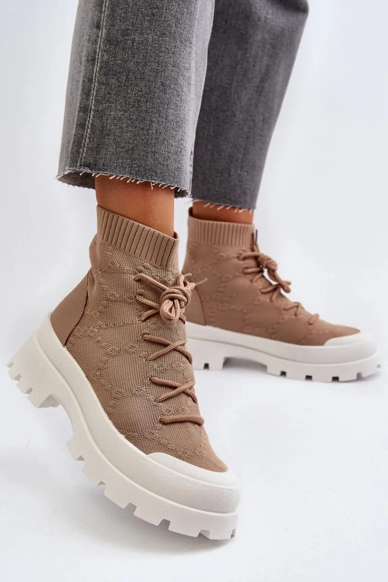 Hot Boto Damskie Skarpetkowe Wsuwane Botki Brązowe Solime